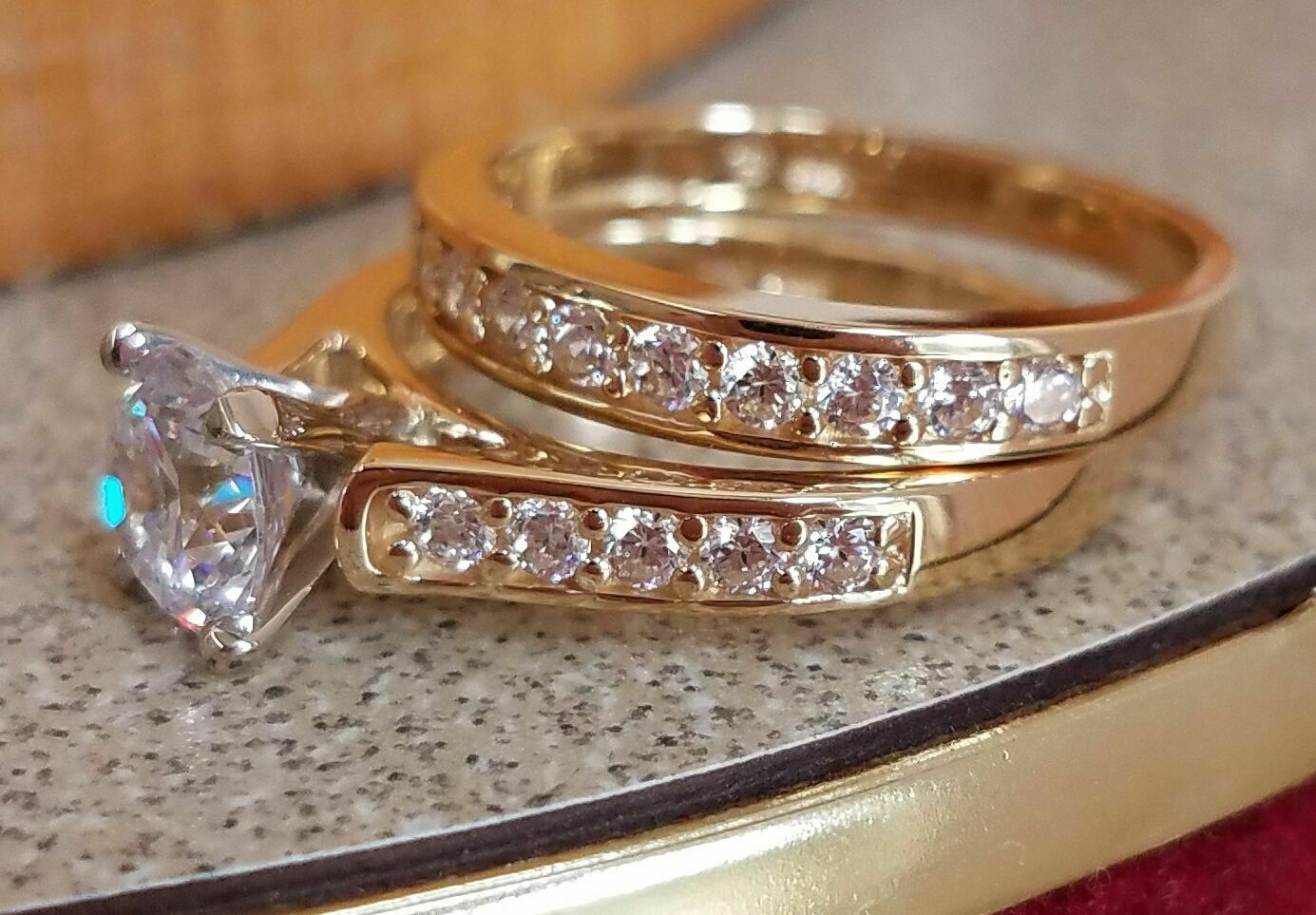 4Ct Round Cut VVS1 Diamond Bridal Set Solitaire Ring Band 14K Yellow Gold Finish