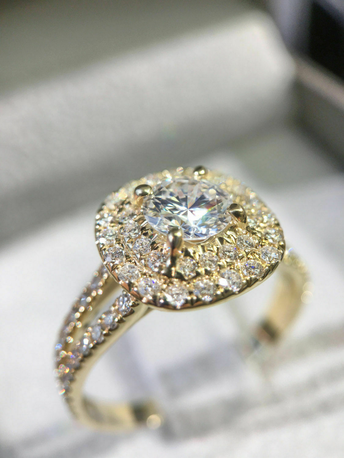 4Ct Round Diamond Double Halo Split Band Engagement Ring 14K Yellow Gold Finish