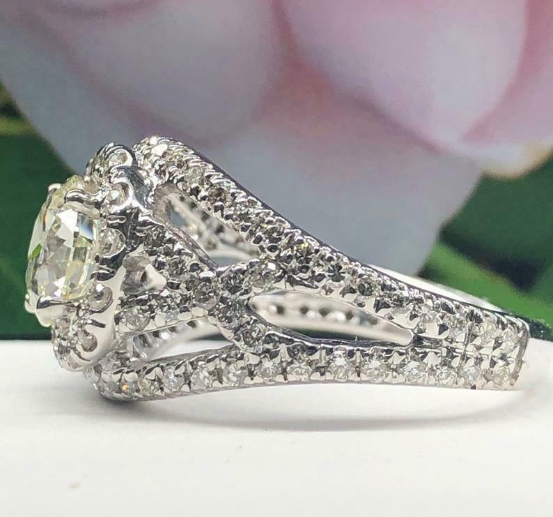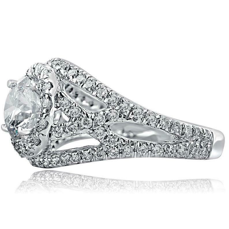 4ct Round Diamond Engagement Ring Split Shank Halo Vintage 14k White Gold Finish