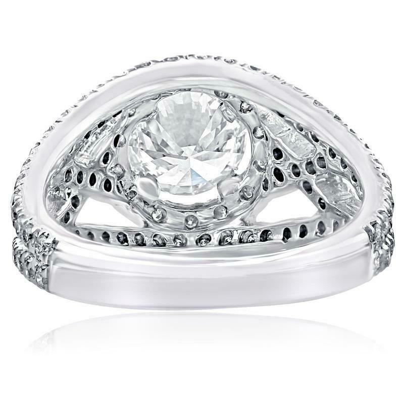 4ct Round Cut Diamond Engagement Ring Split Shank Halo Vintage 14k White Gold Finish