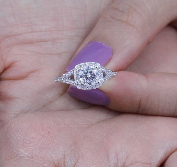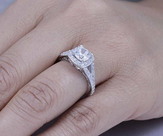 4Ct Round Diamond Halo Split Band Vintage Engagement Ring 14K White Gold Finish