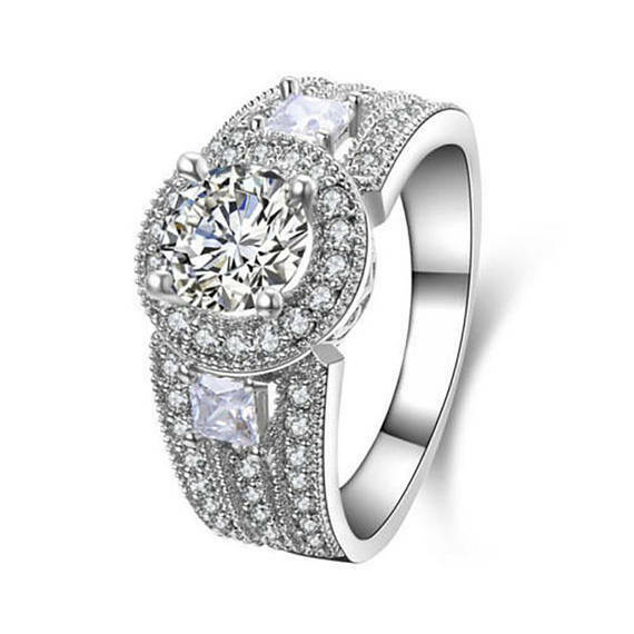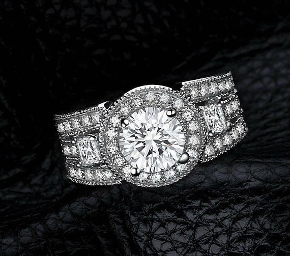 4Ct Round Diamond Vintage Halo Wide Shank Engagement Ring 14K White Gold Finish