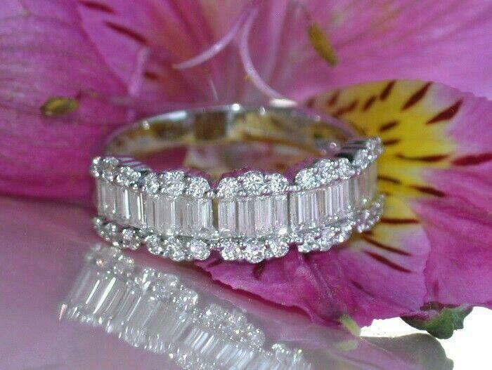 5.5ct Baguette Diamond Half Eternity Stylish Wedding Band 14K White Gold Over