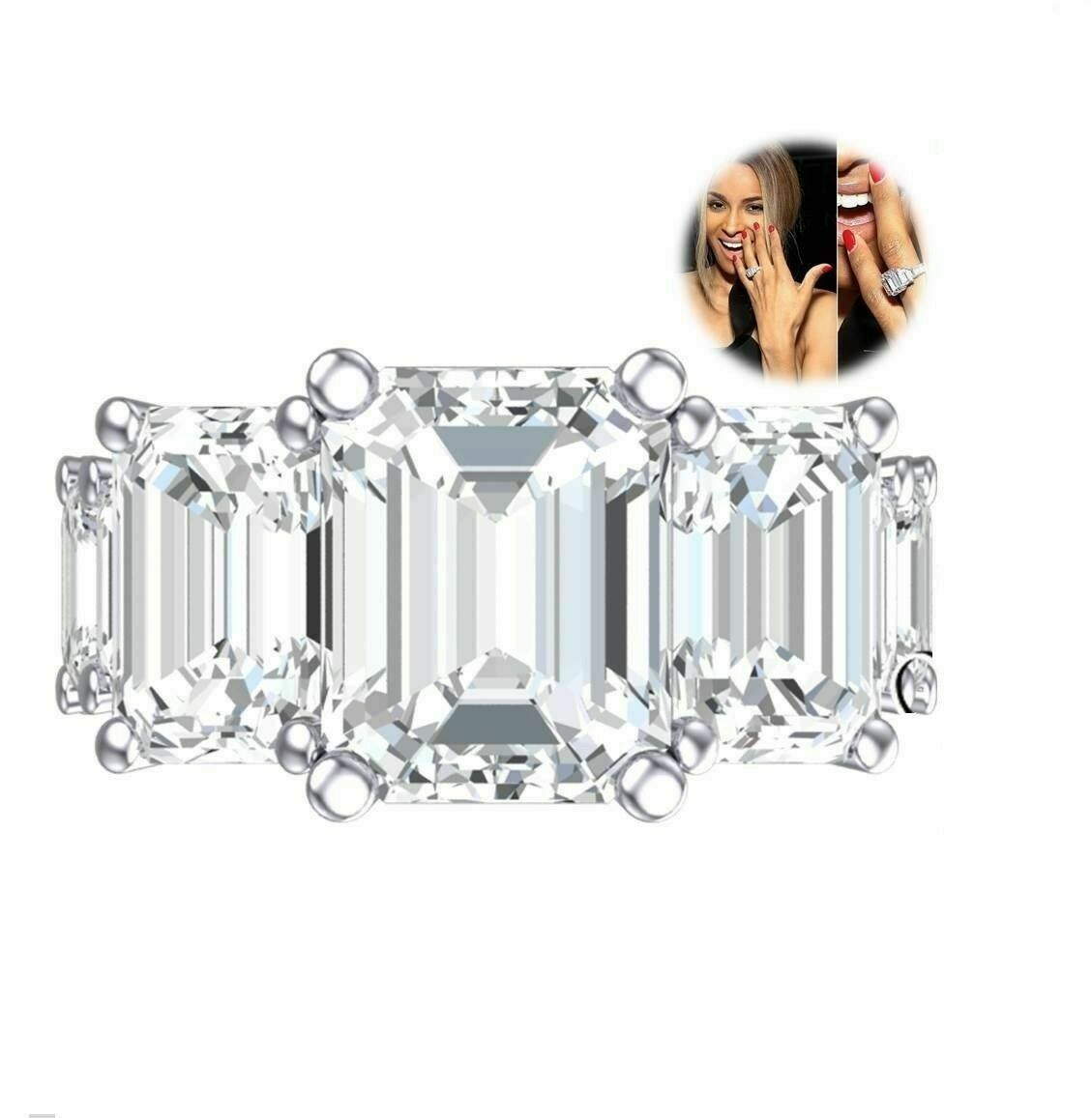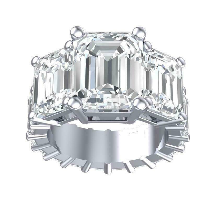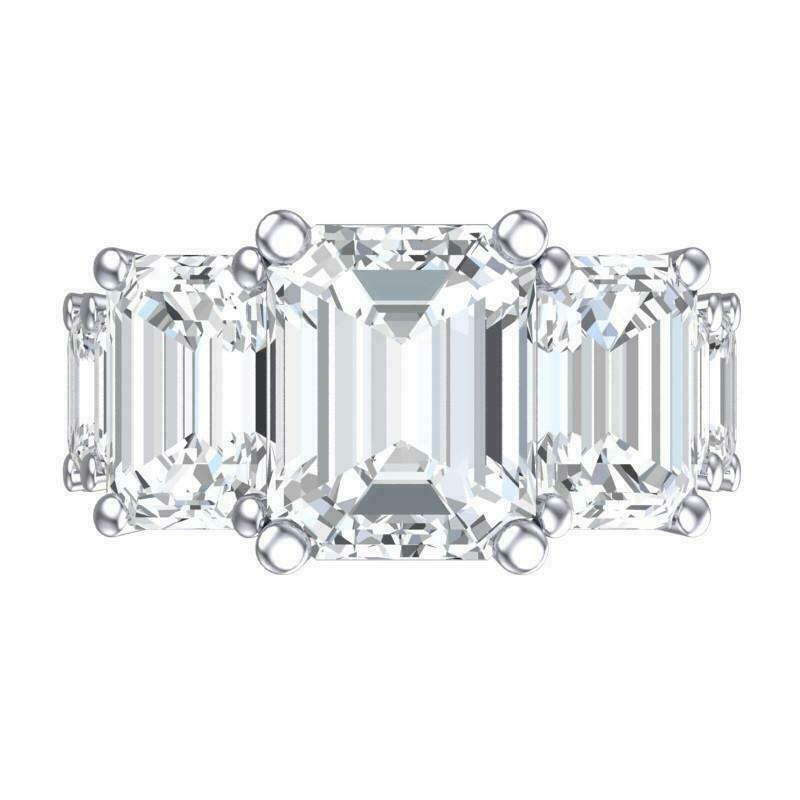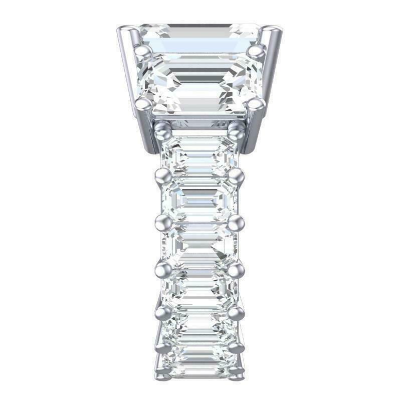 5.5ct Emerald Cut Diamond Iced Cocktail Engagement Ring 14K White Gold Finish