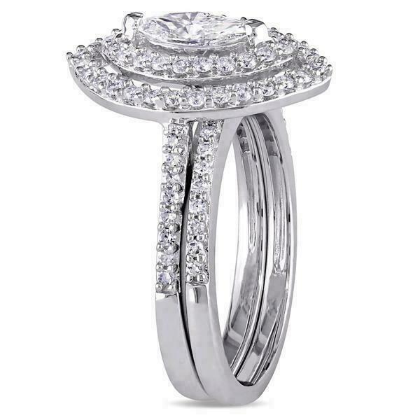 5.5ct Marquise Cut Diamond Bridal Set Dual Halo Ring Band 14K White Gold Finish