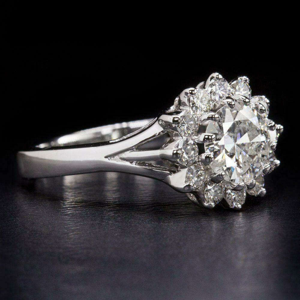 5.5ct Round Cut Diamond Flower Design Halo Engagement Ring 14K White Gold Finish