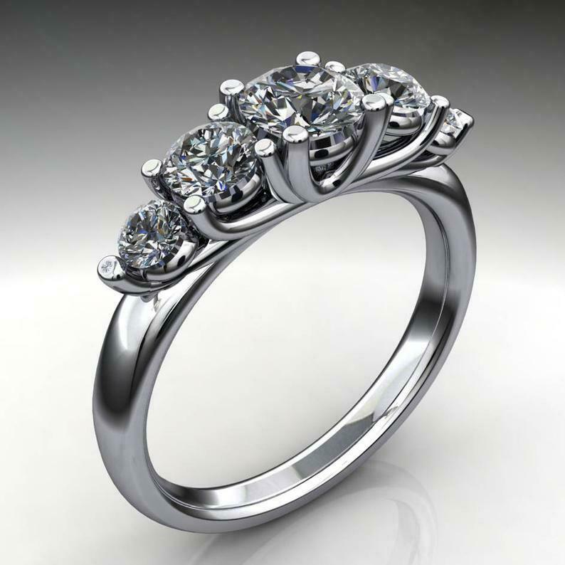 5 Stone Anniversary Wedding Ring Band 2ct Round Cut Diamond 14k WhiteGold Finish