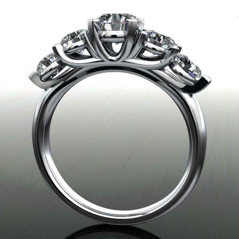 5 Stone Anniversary Wedding Ring Band 2ct Round Cut Diamond 14k White Gold Finish