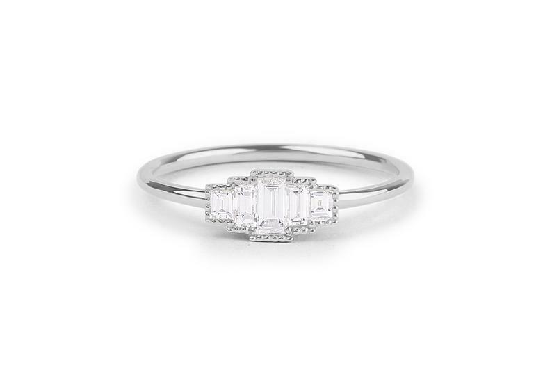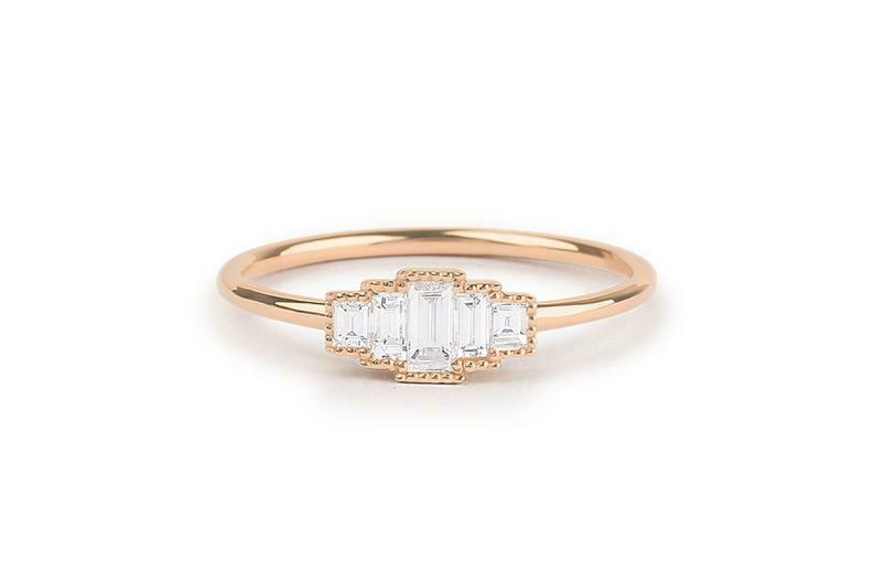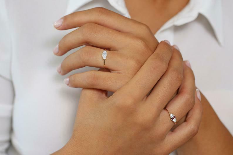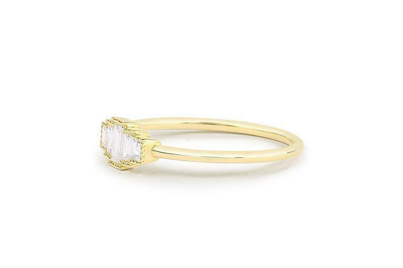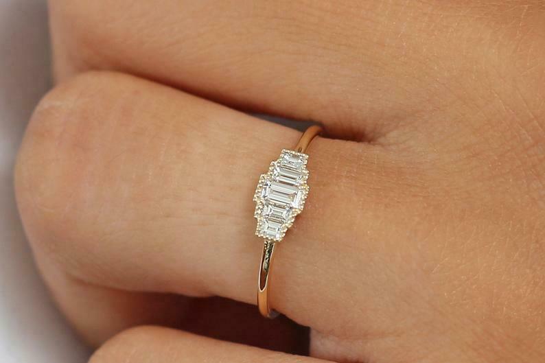 5 Stone Minimalist Engagement Ring 1ct Baguette Cut Diamond 14k Yellow Gold Over