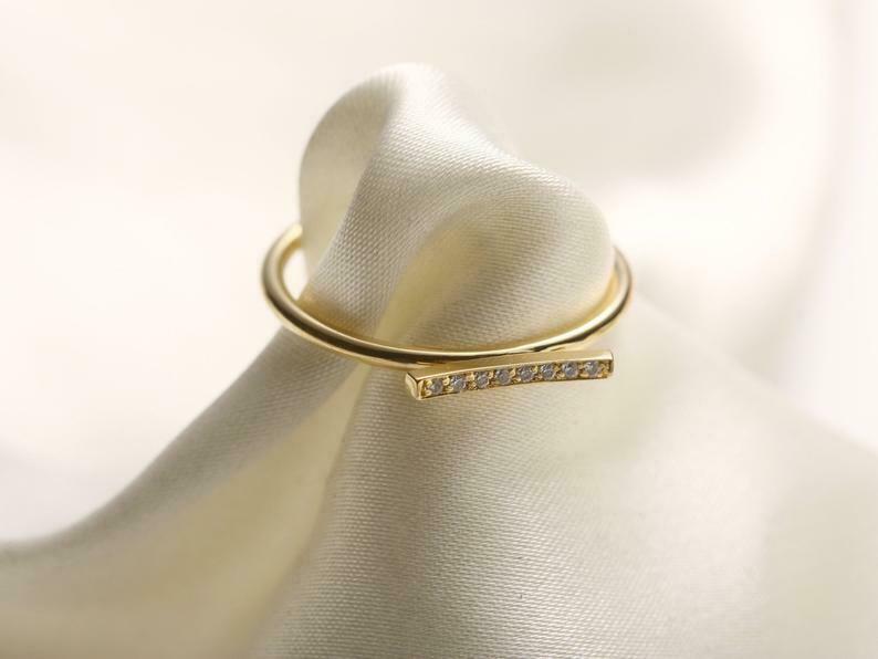 5 Stone Minimalist Engagement Ring 1ct Round Cut Diamond 14k Yellow Gold Finish