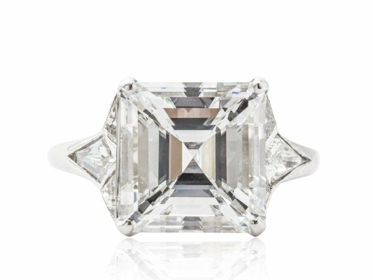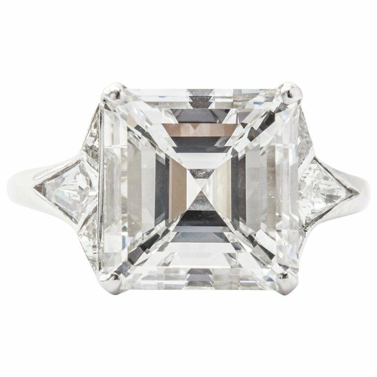 5Ct Asscher Cut Diamond Engagement Ring 14K White Gold Finish Trillion Accent