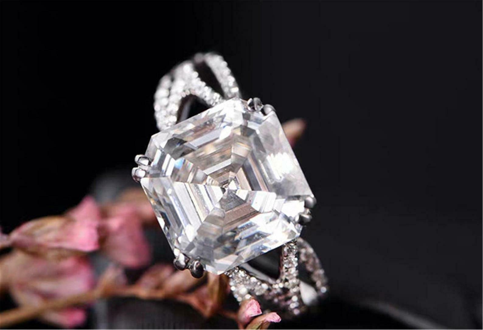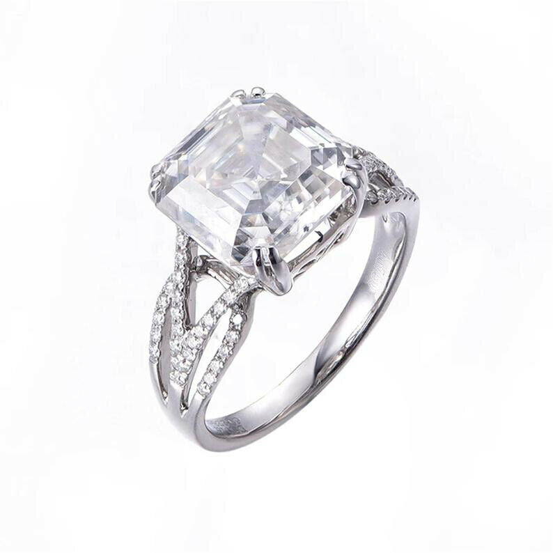 5ct Asscher Cut Diamond Split Shank Solitaire Cocktail Ring 14k White Gold Finish