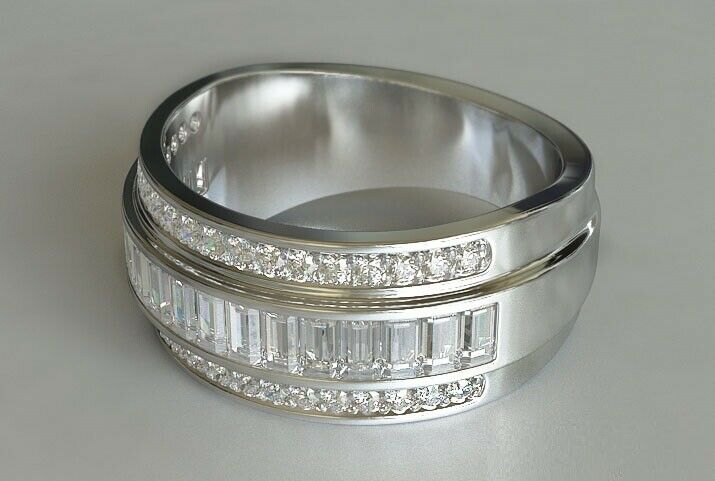 5ct Baguette Diamond Wide Trendy Half Eternity Wedding Band 14k White Gold Over