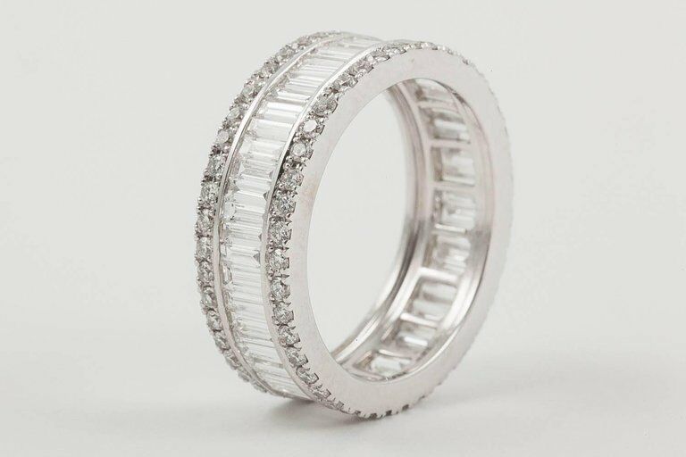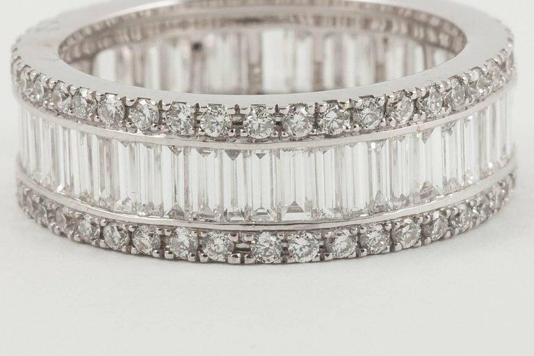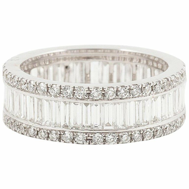 5Ct Baguette Round Cut Diamond Eternity Wedding Ring Band 18K White Gold Finish