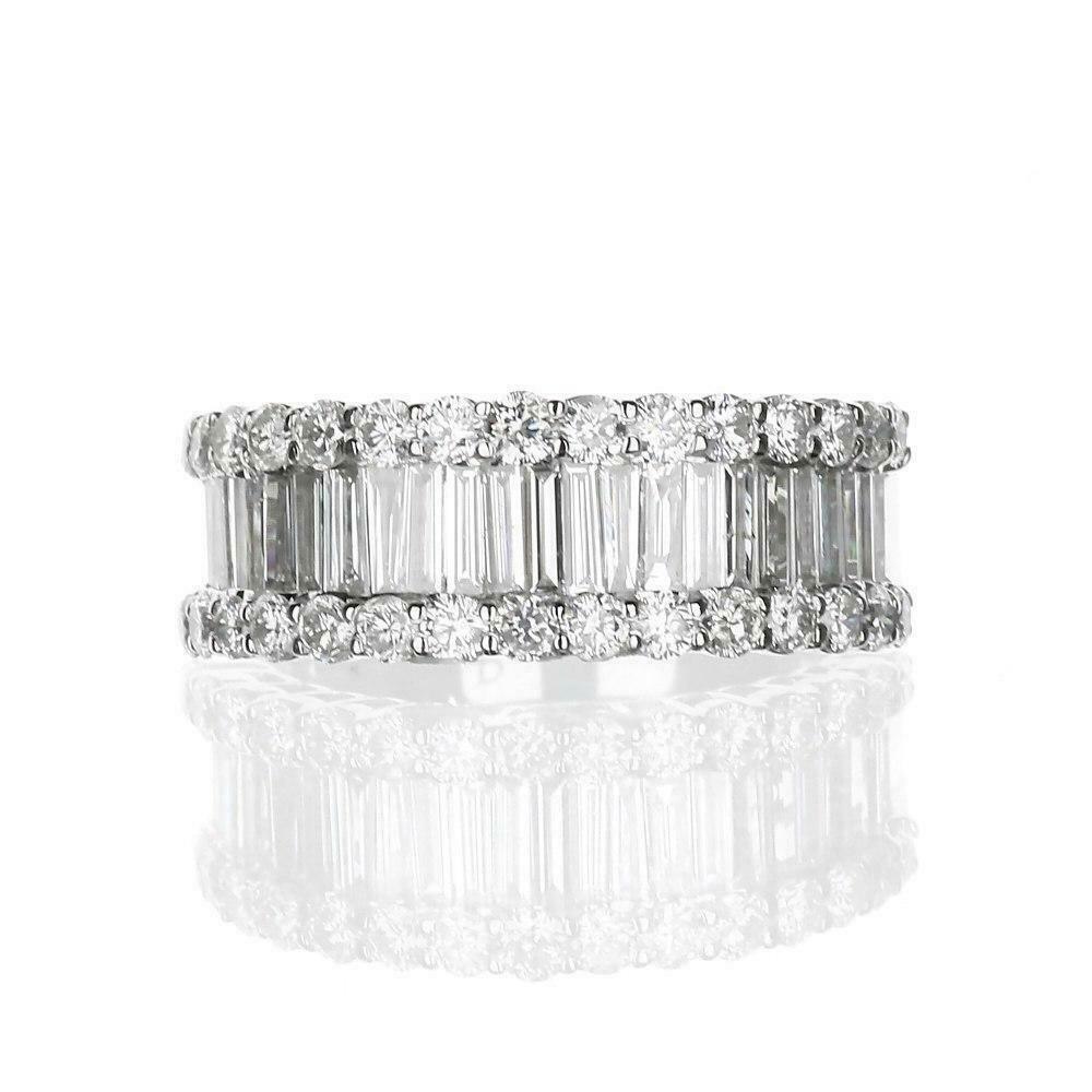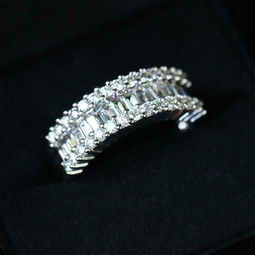 5Ct Baguette Round Diamond Iced Half Eternity Wedding Ring 14K White Gold Finish