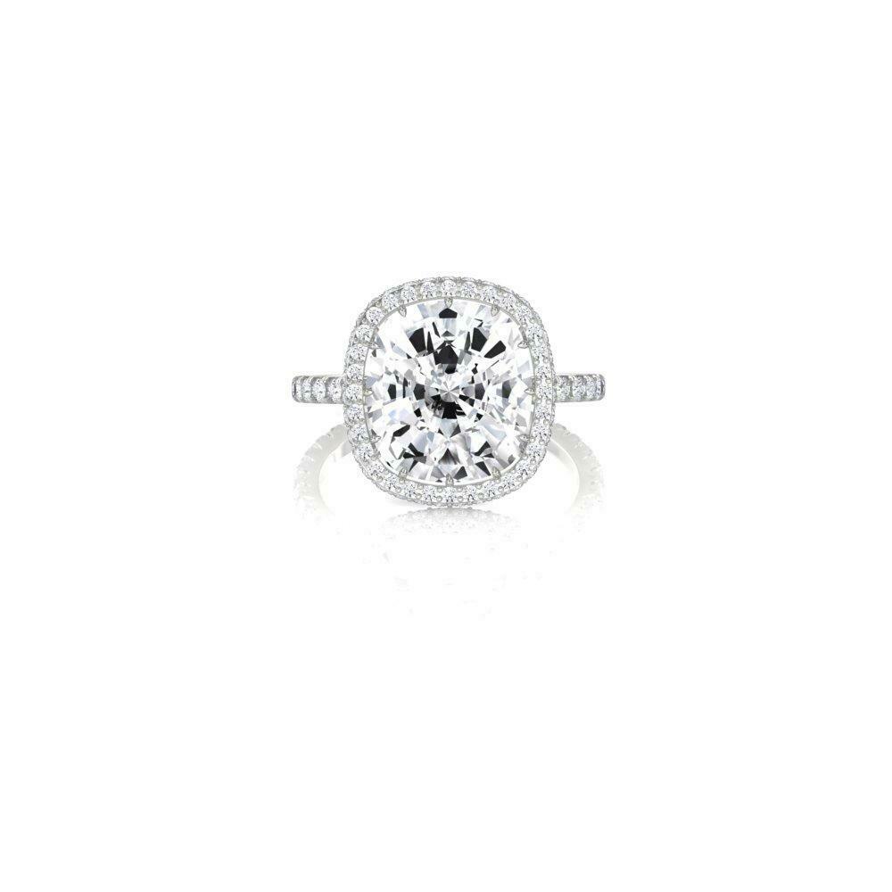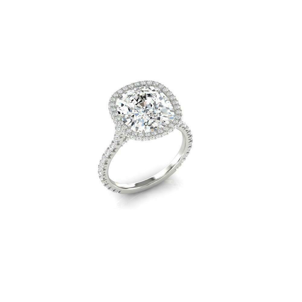 5Ct Cushion Cut Diamond Halo Solitaire Engagement Ring 18K White Gold Finish