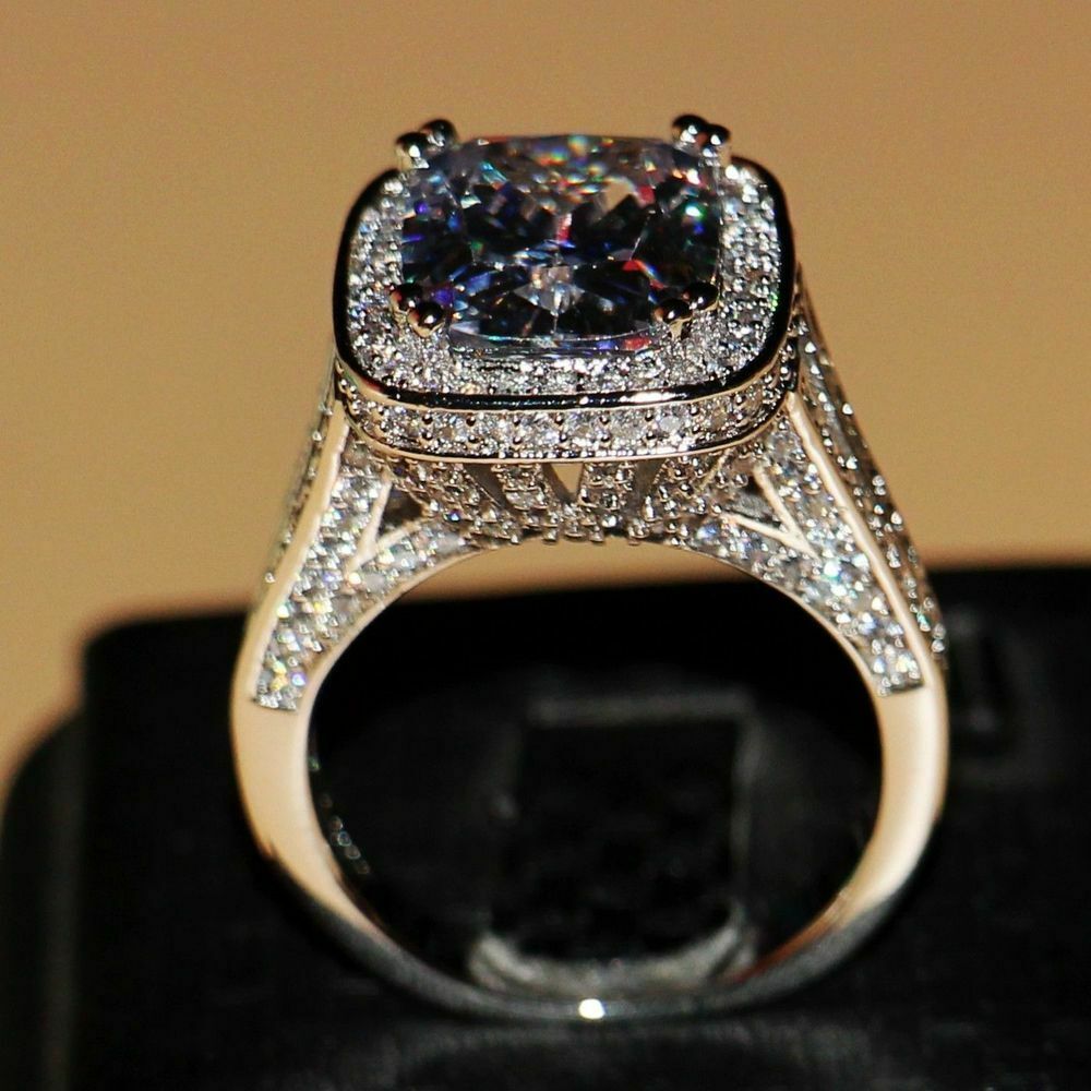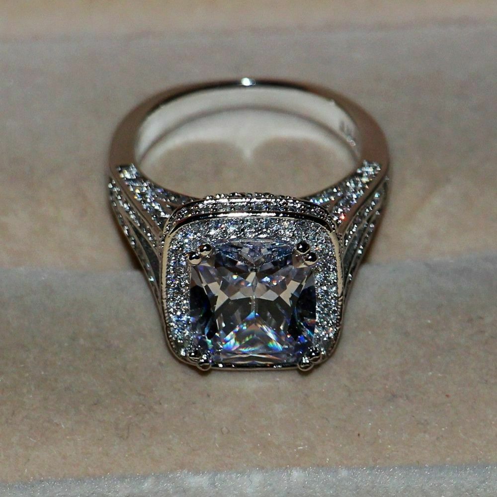 5Ct Cushion Cut Diamond Iced Halo Cocktail Engagement Ring 14K White Gold Finish