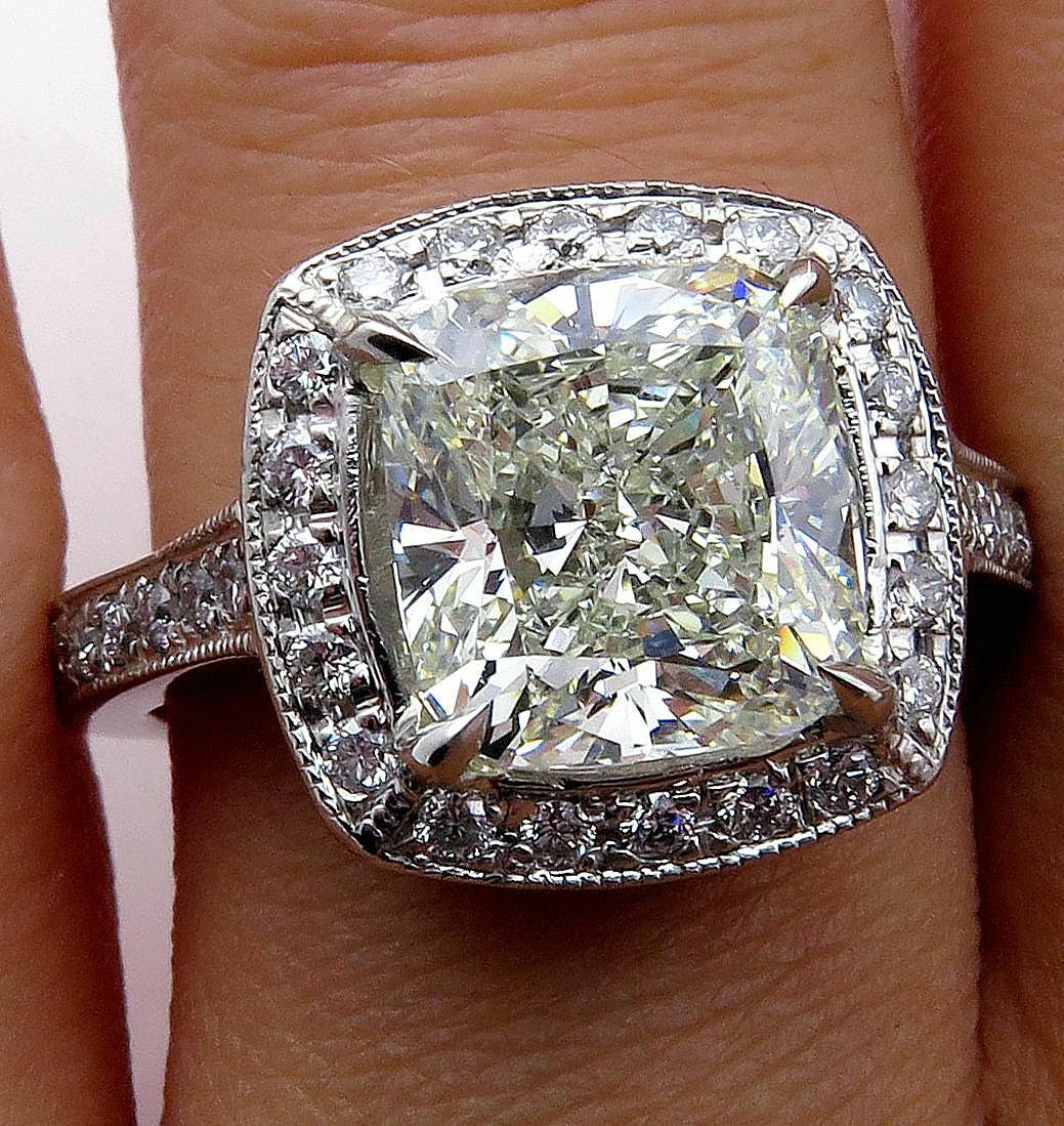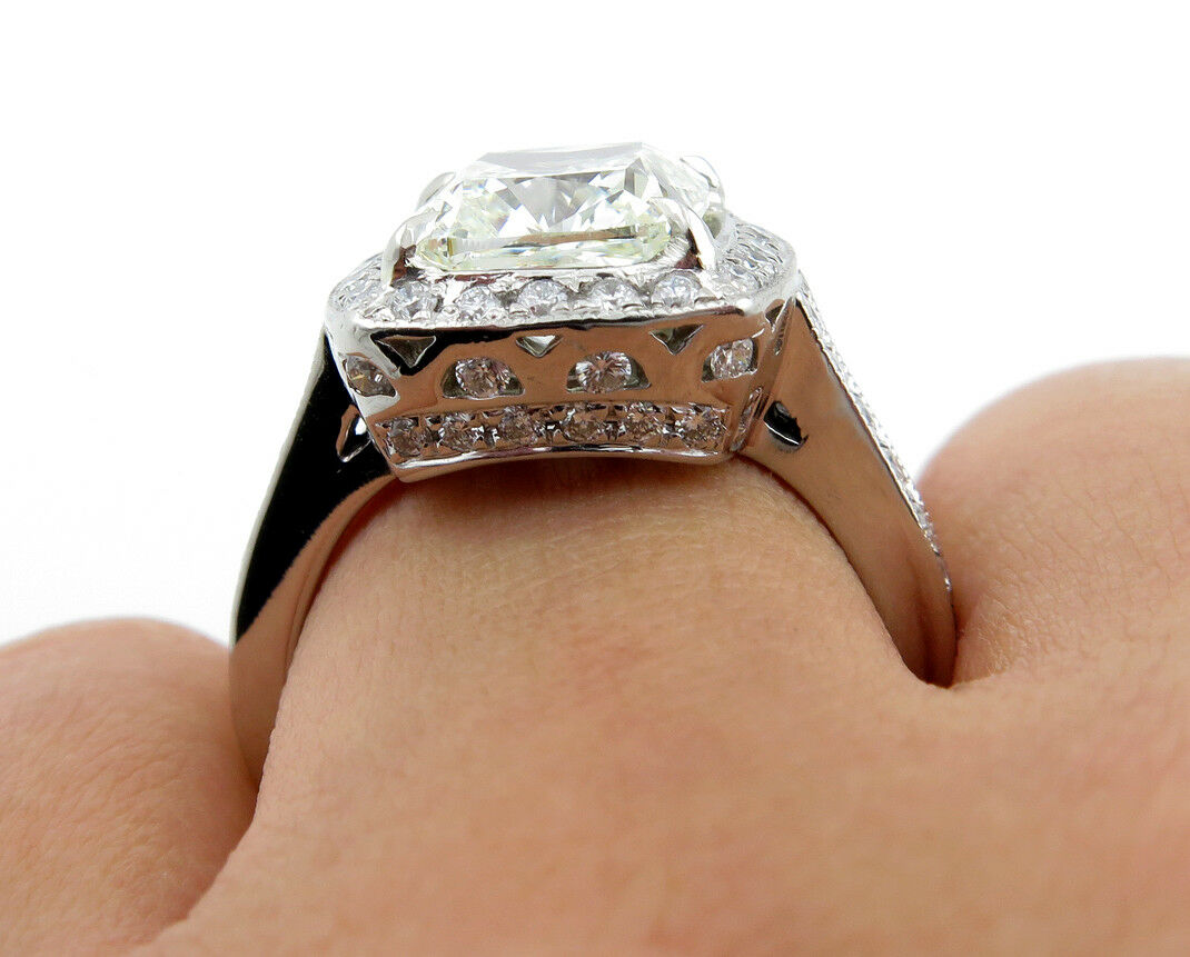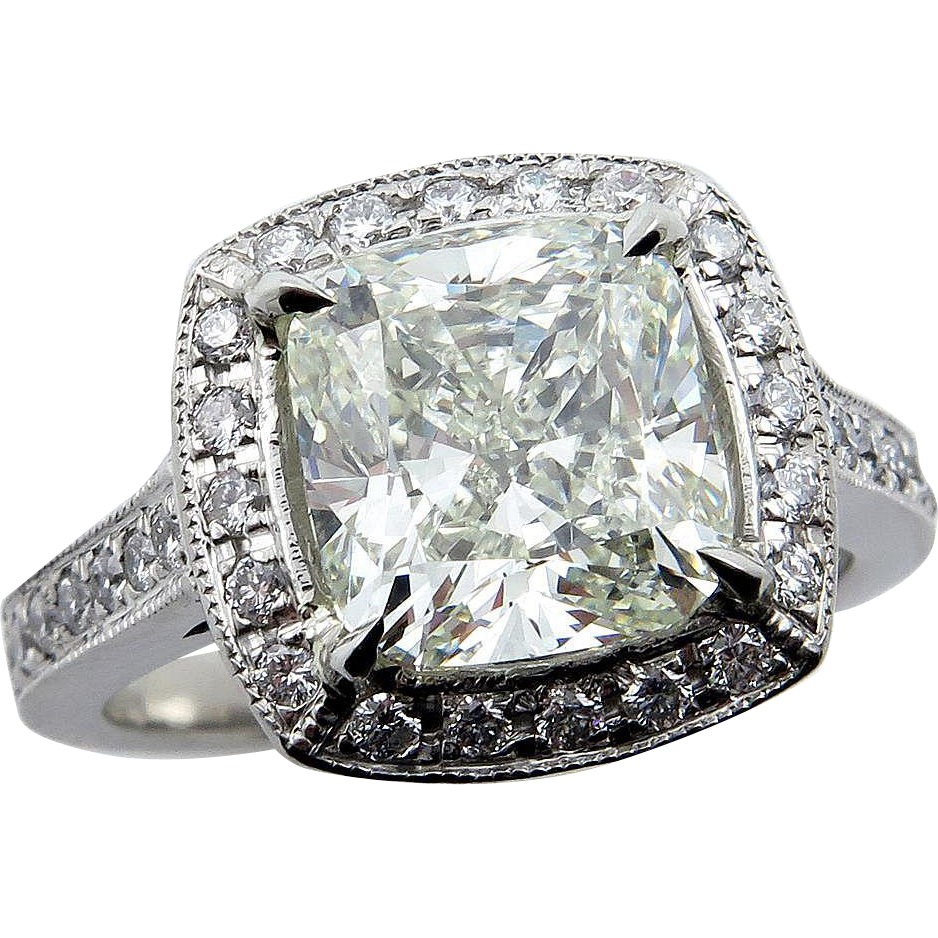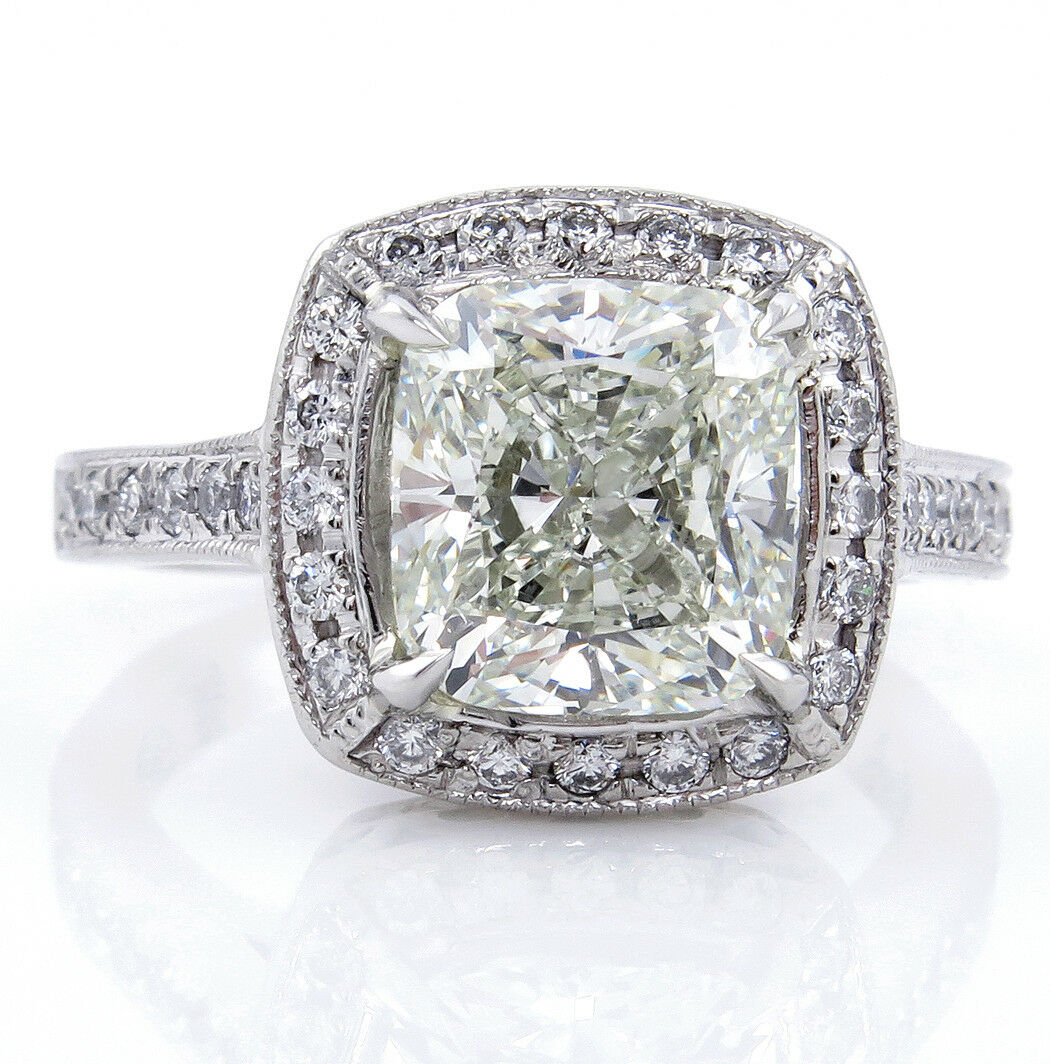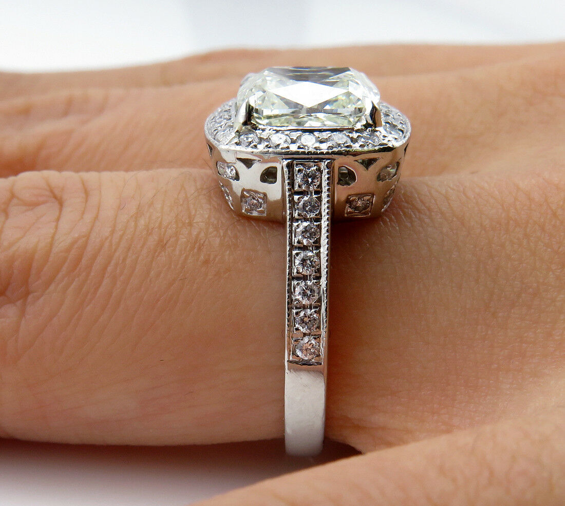 5Ct Cushion Cut VVS1/D Diamond Halo Vintage Engagement Ring 14K White Gold Over
