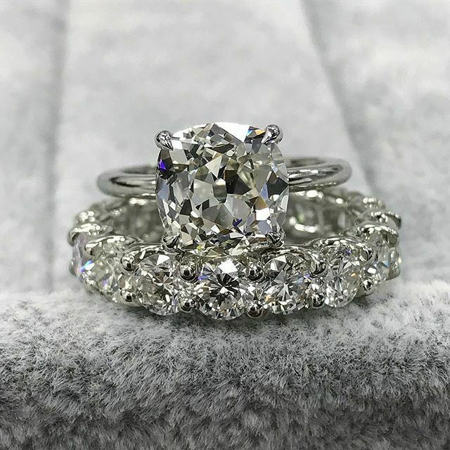5Ct Cushion Diamond Bridal Set Solitaire Ring Eternity Band 14K White Gold Over