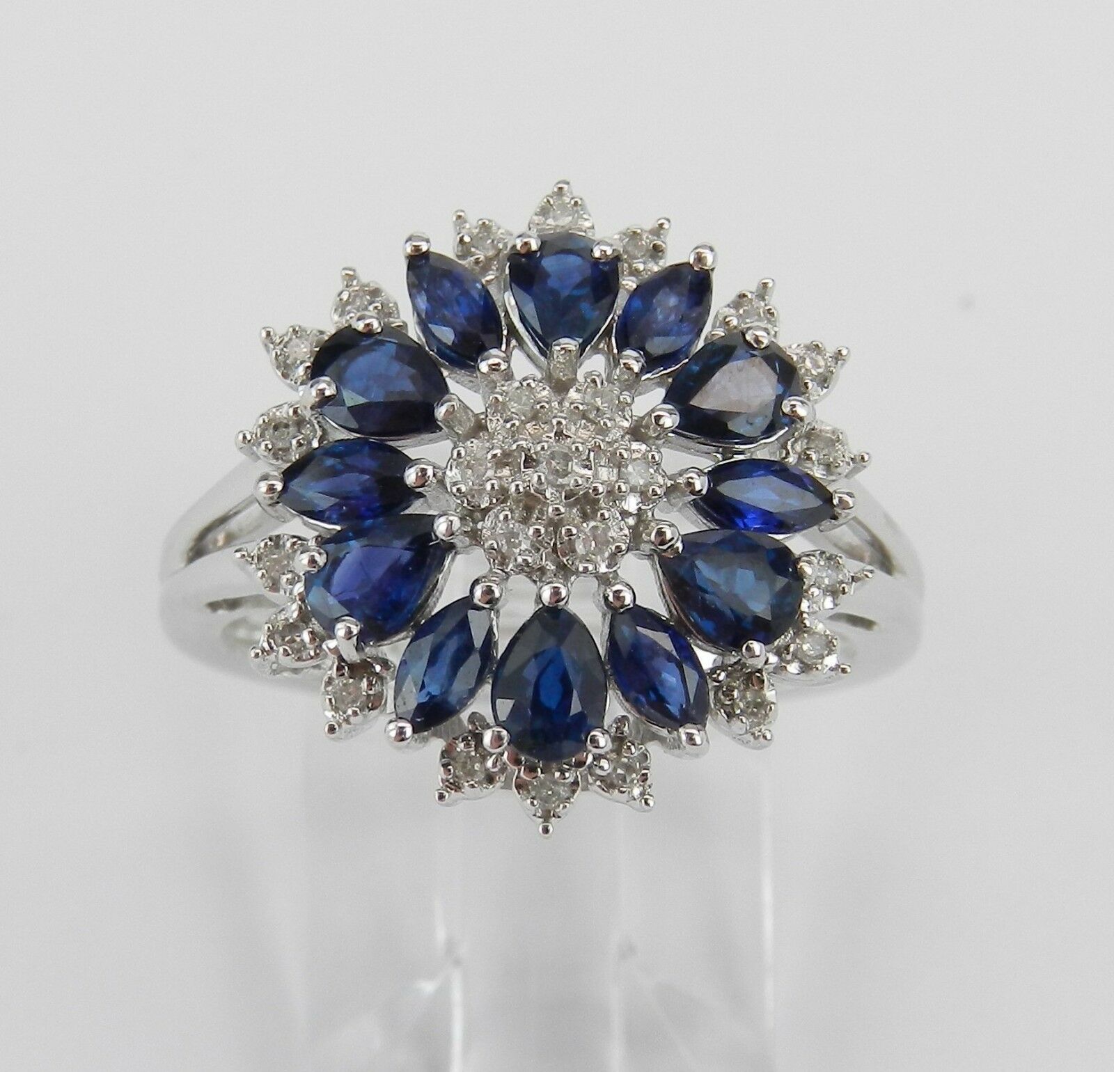 5ct Diamond Sapphire Elegant Gatsby Cocktail Engagement Ring 14k White Gold Over