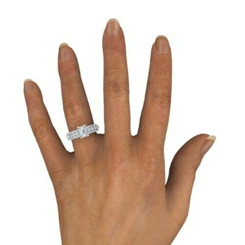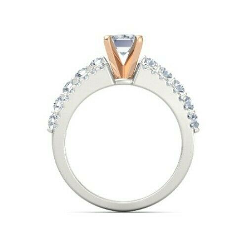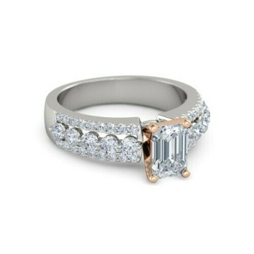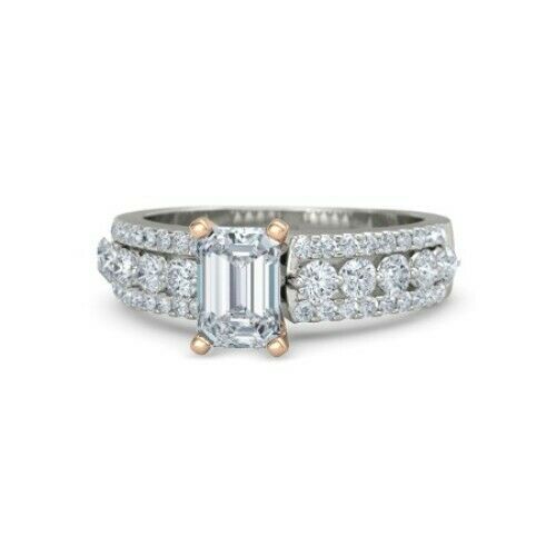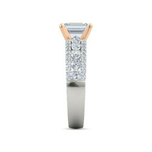 5Ct Emerald Cut Diamond Elegant Iced Accent Engagement Ring 14K Dual Gold Finish