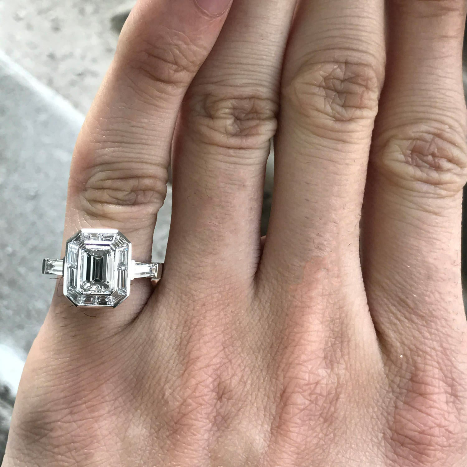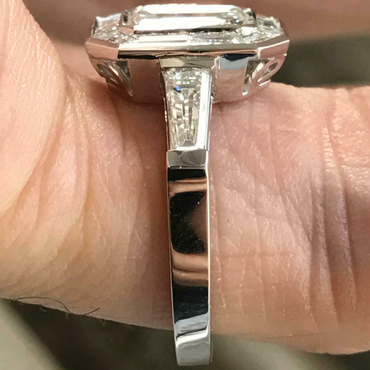 5ct Emerald Cut Diamond Engagement Ring Art Deco 14k White Gold Finish