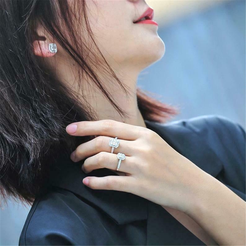 5ct Emerald Cut Diamond Engagement Ring Solitaire with Accent 14k WhiteGold Over