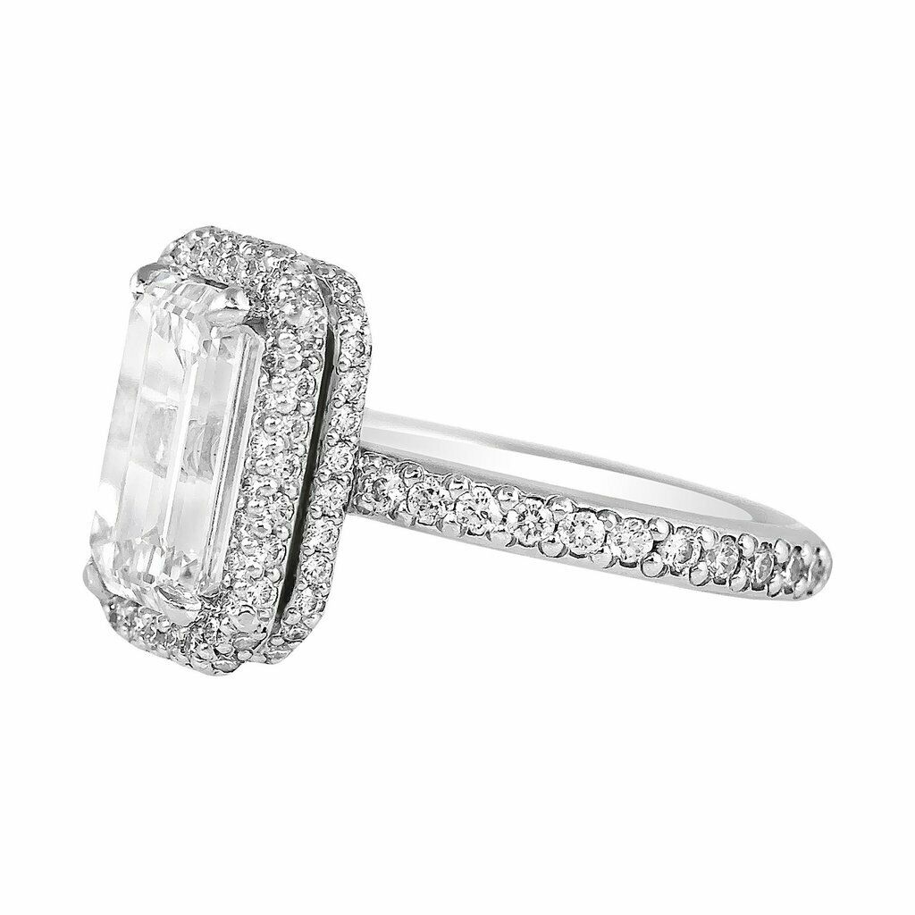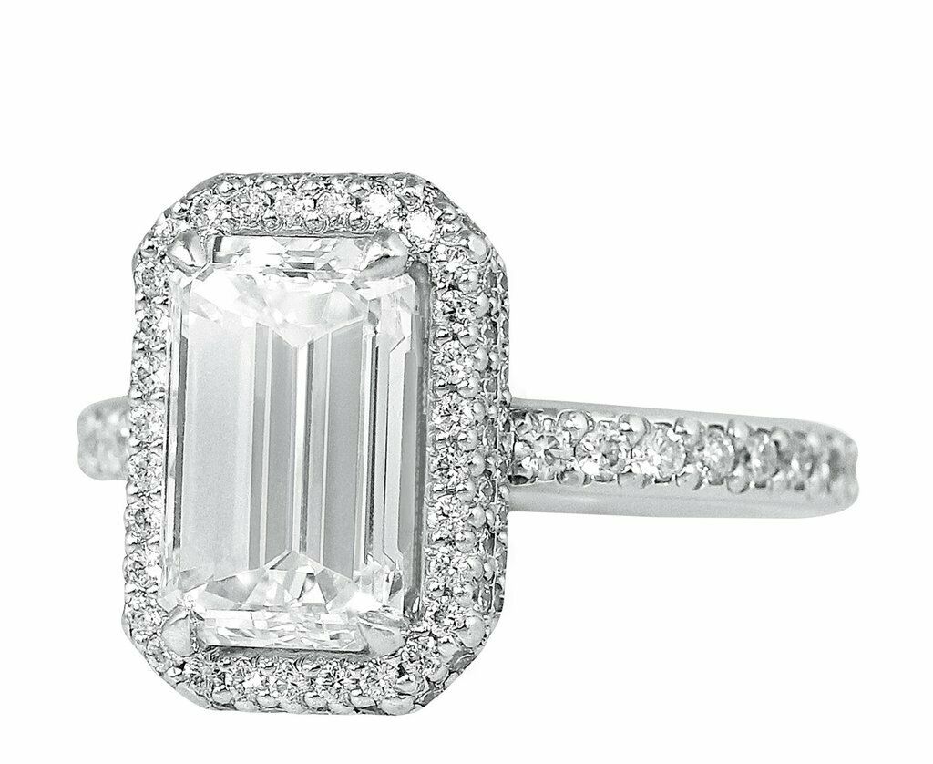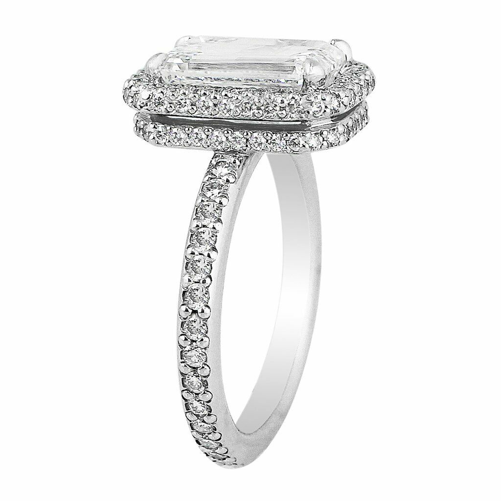 5Ct Emerald Cut Diamond Hidden Dual Halo Engagement Ring 14K White Gold Finish