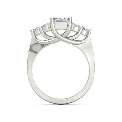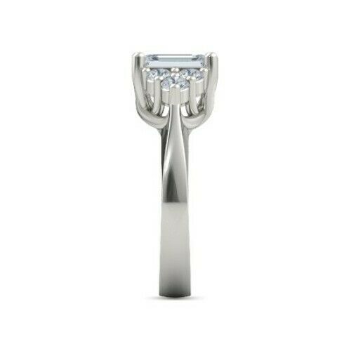 5Ct Emerald Cut Diamond Petite Round Accents Solitaire Ring 14K White Gold Over
