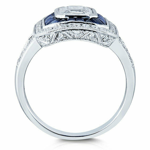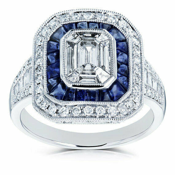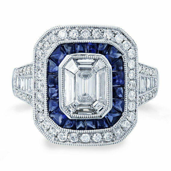 5Ct Emerald Cut Diamond Sapphire Art Deco Engagement Ring 14K White Gold Finish