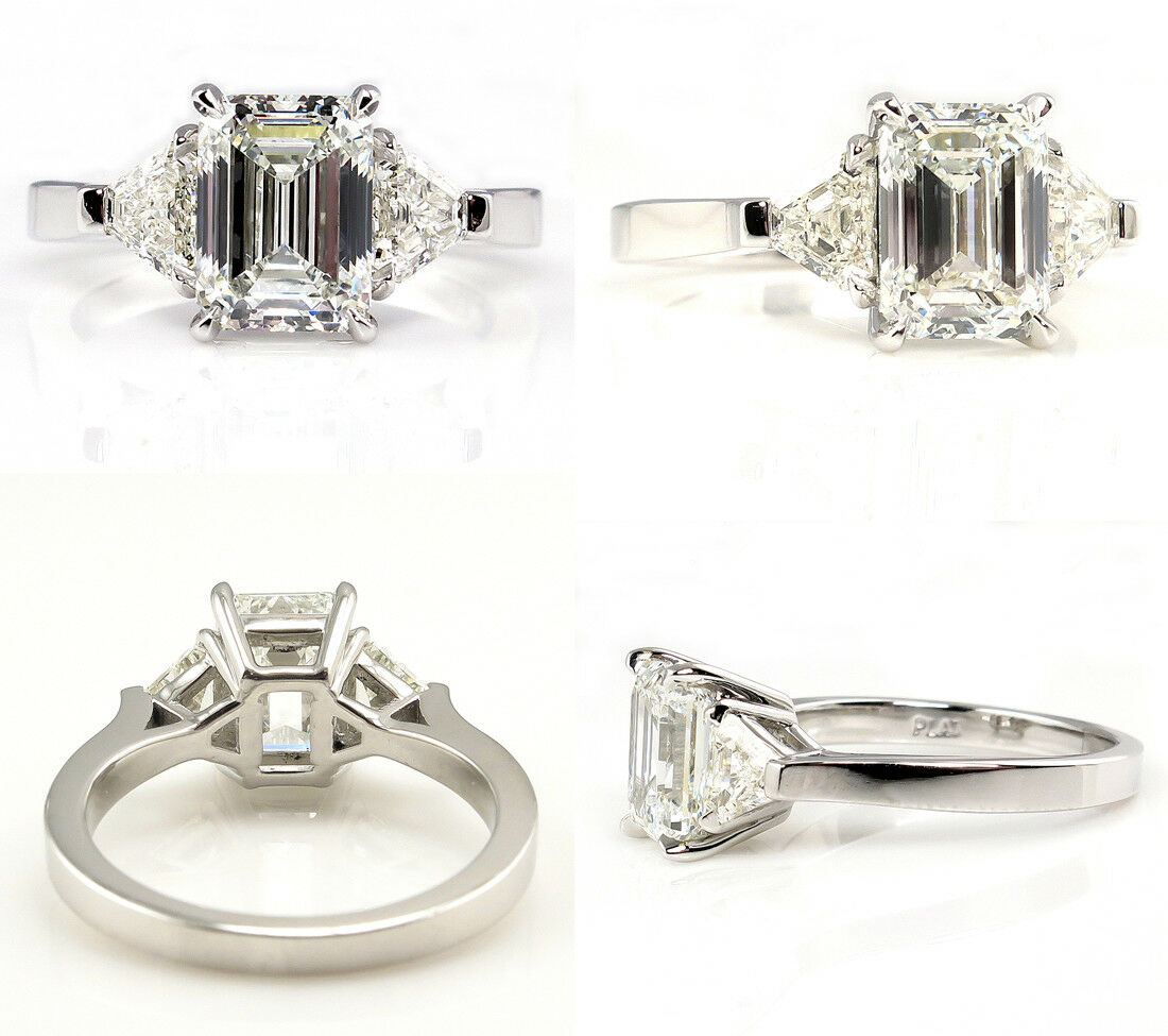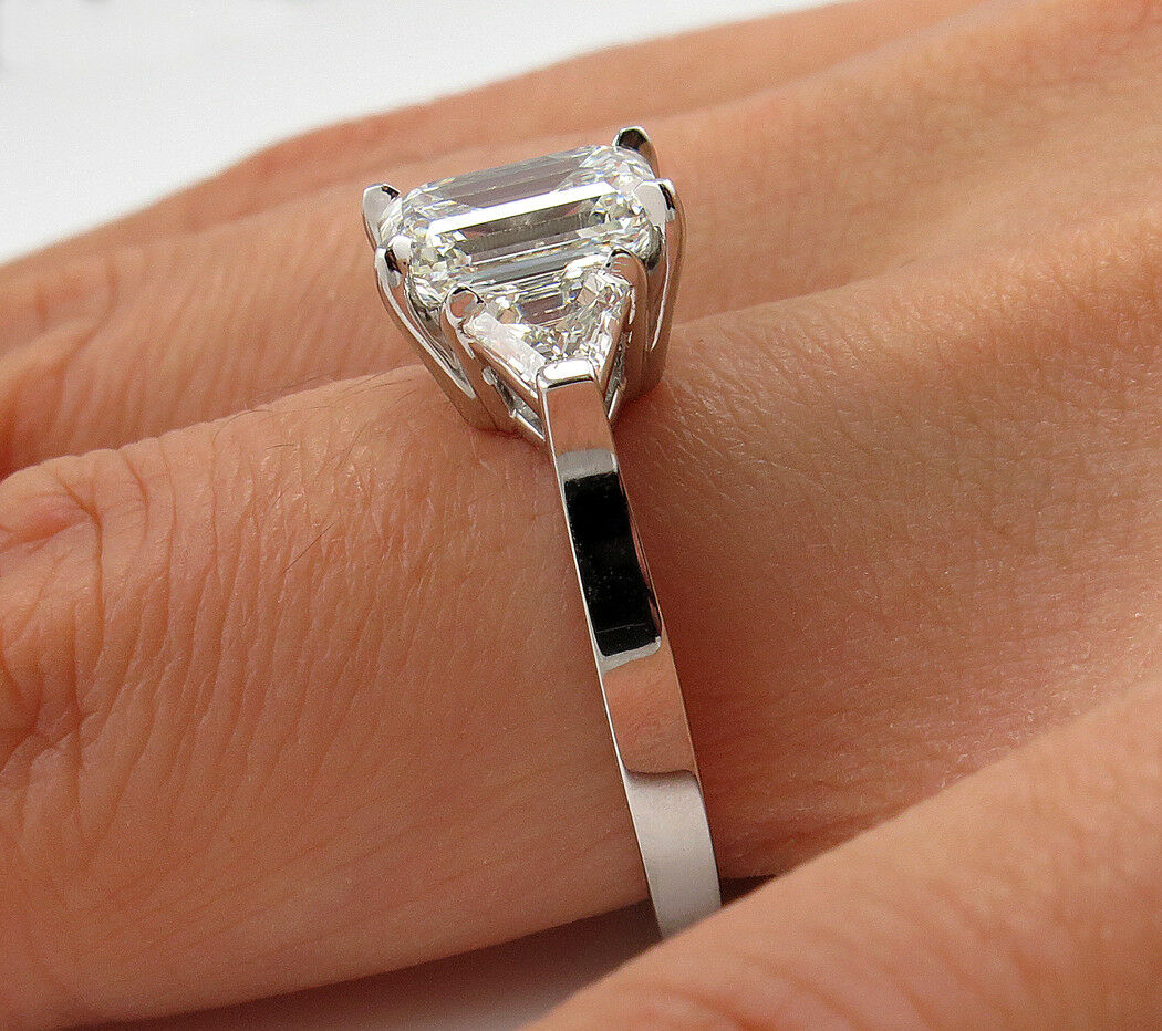 5Ct Emerald Cut Diamond Solitaire Ring 18K White Gold Finish Calf Head Accents