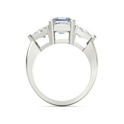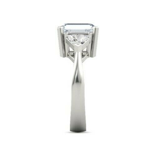 5Ct Emerald Cut Diamond Trillion Accents Three Stone Ring 14K White Gold Finish