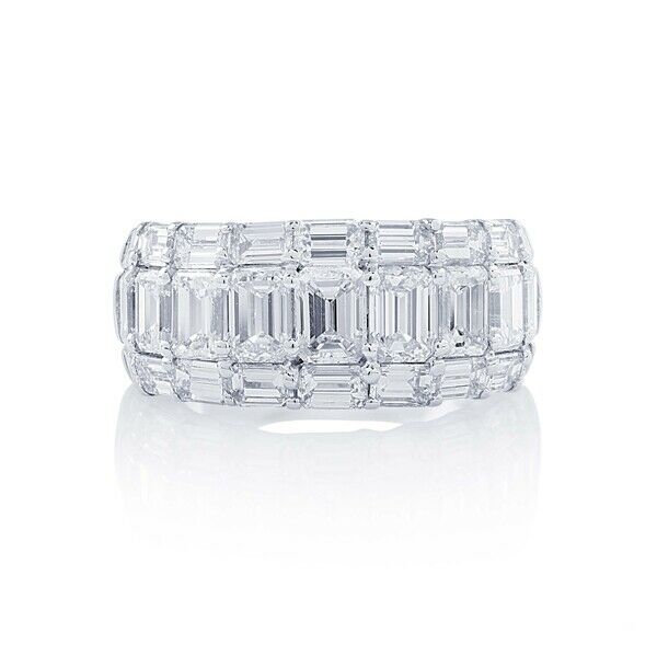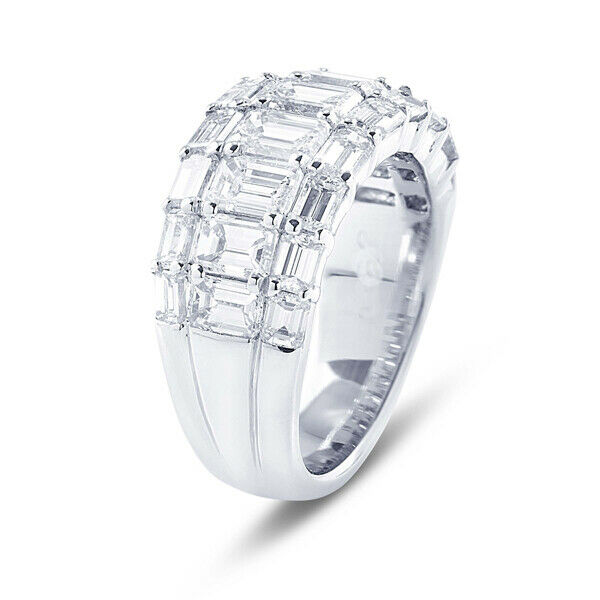 5ct Emerald Cut Diamond Wedding Band Iced Channel Stylish 14k White Gold Finish