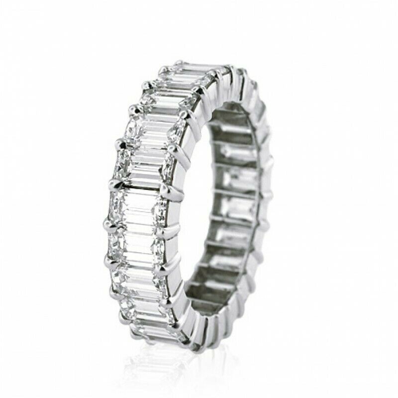 5Ct Emerald Cut DVVS1 Diamond Full Eternity Wedding Band 14K White Gold Finish