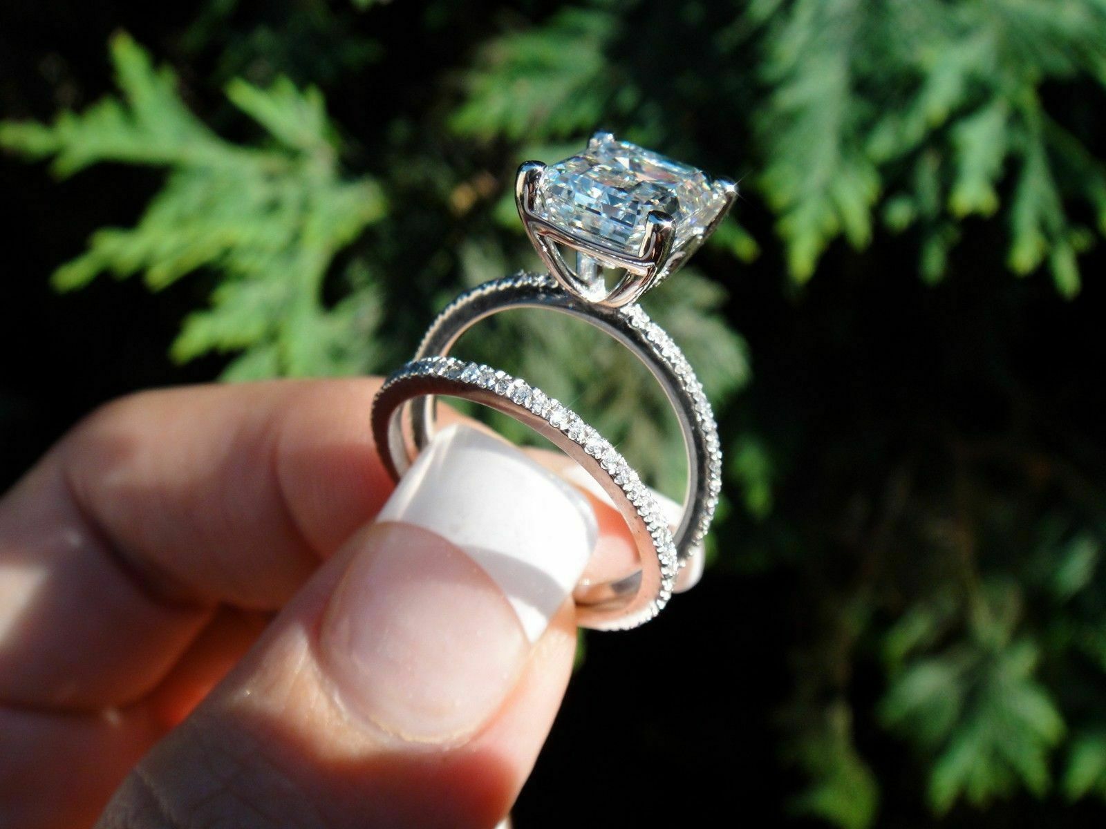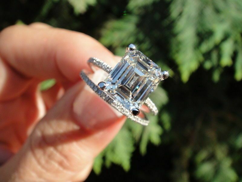 5Ct Emerald Diamond Bridal Set Solitaire Ring Eternity Band 14K White Gold Over