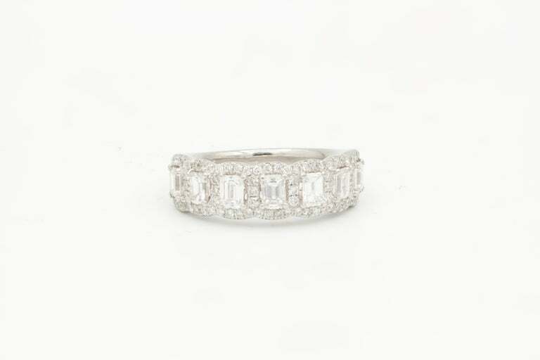 5ct Emerald Cut Diamond Wedding Band Half Eternity Halo Cluster 14k White Gold Over