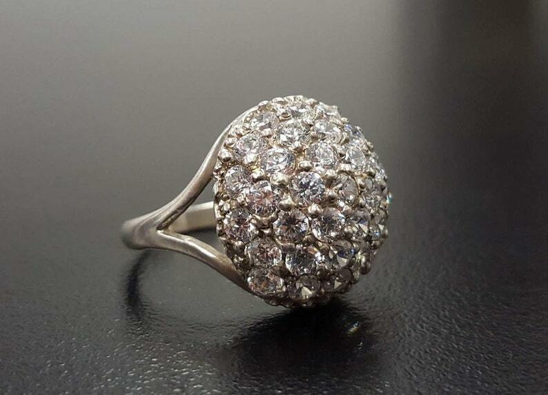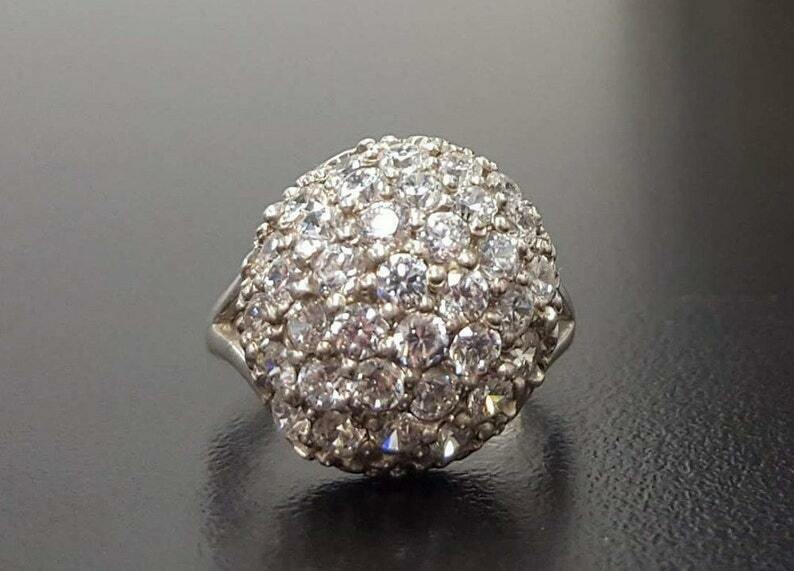 5ct Engagement Ring Round Cut Diamond Cluster Dome Design 14k White Gold Finish