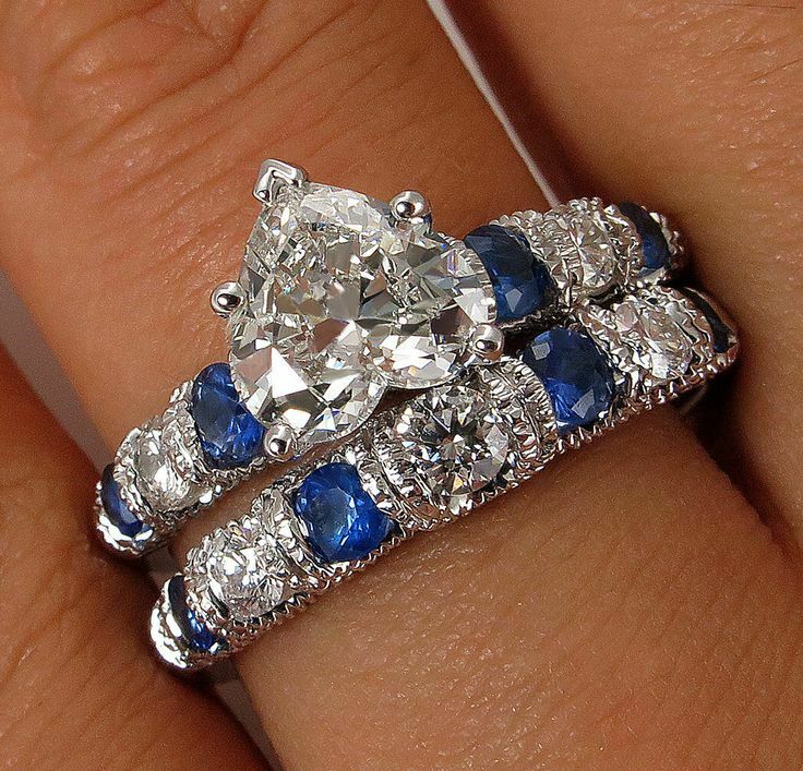 5Ct Heart Cut Diamond Bridal Set Sapphire Vintage Exquisite 14K White Gold Over