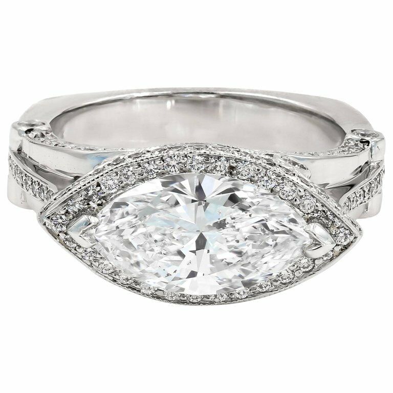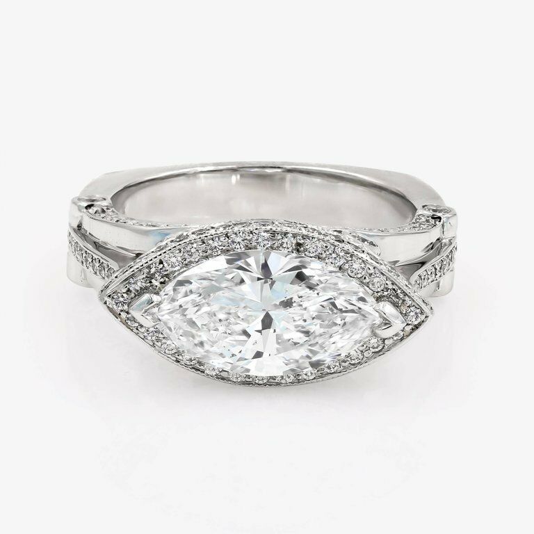 5Ct Marquise Cut Diamond Cocktail Iced Halo Engagement Ring 14K White Gold Over
