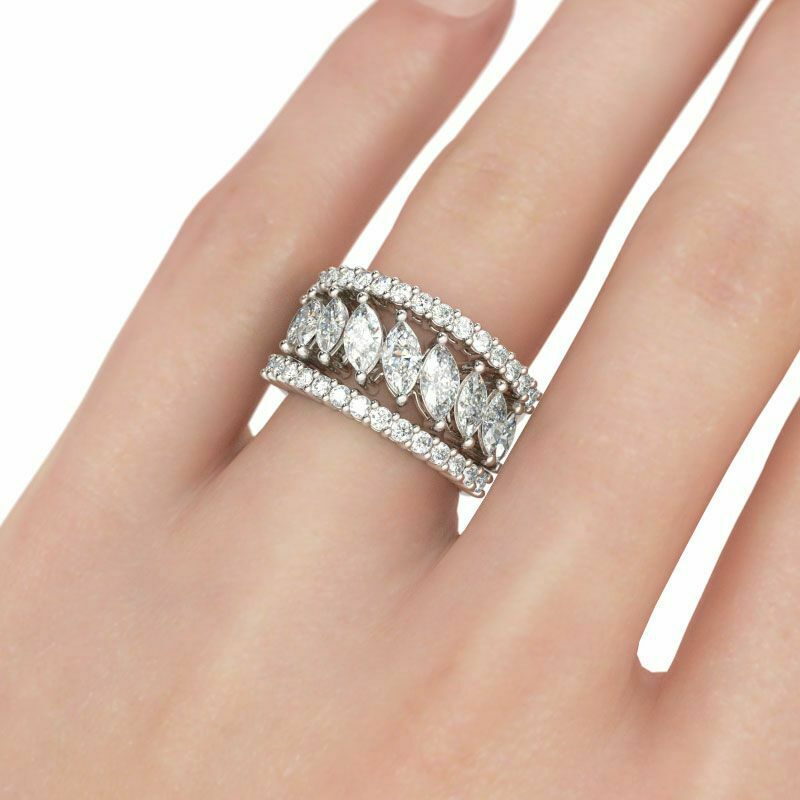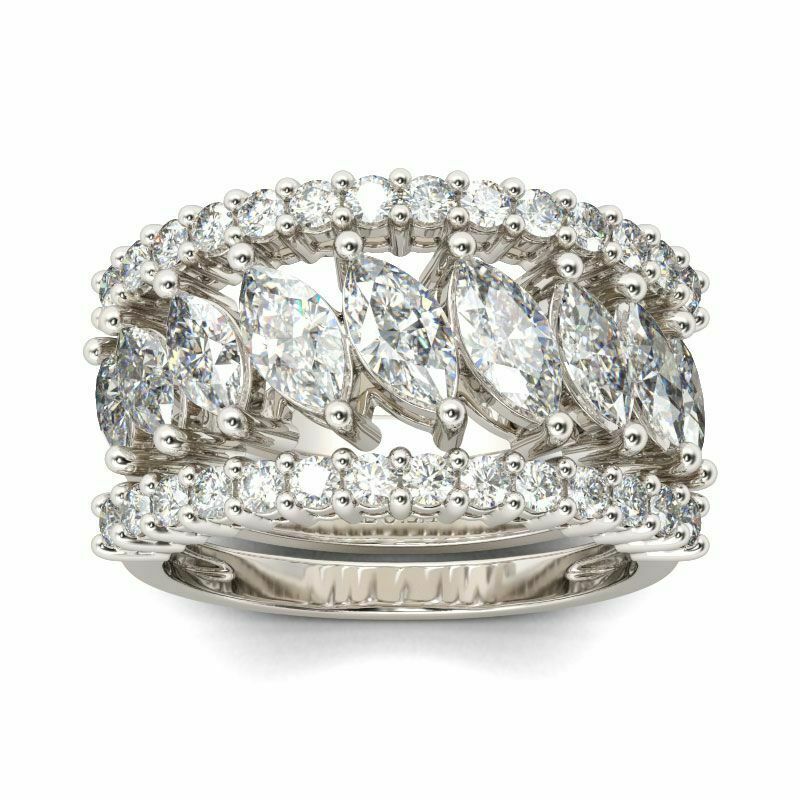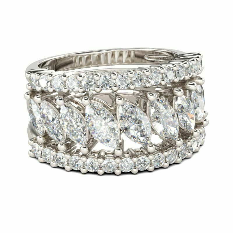 5Ct Marquise Round Cut Diamond Trio Set Wedding Band Ring 14K White Gold Finish