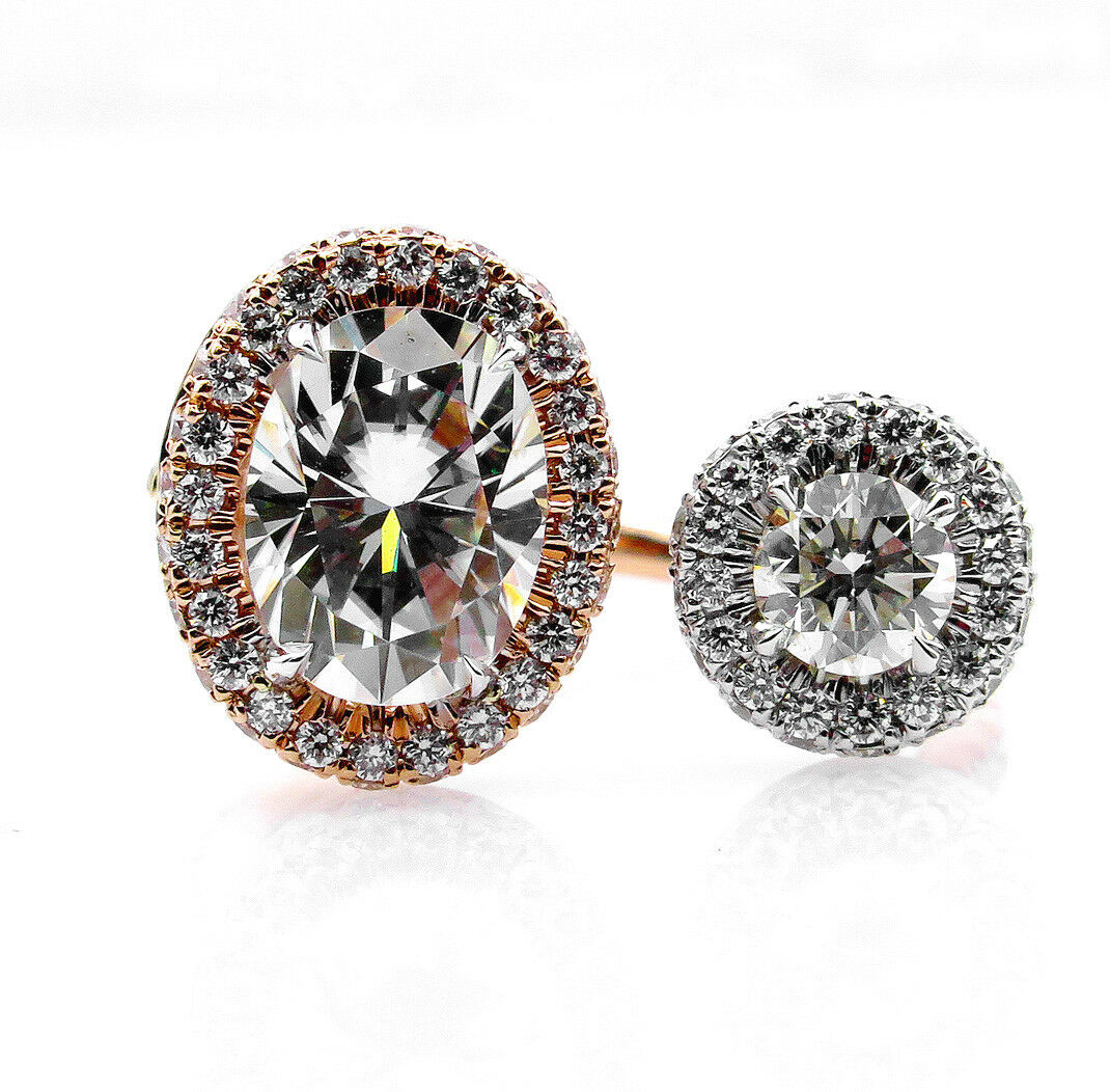 5Ct Oval Round Cut Diamond Unique Open Halo Engagement Ring 14K Rose Gold Finish
