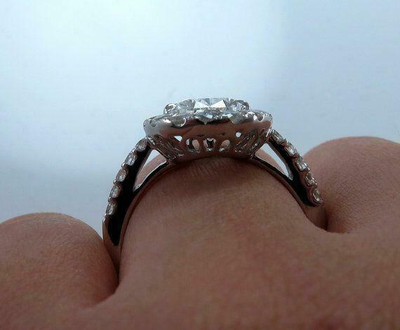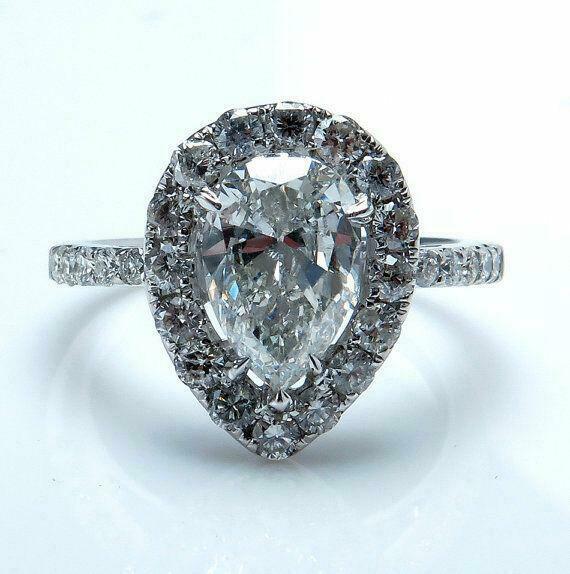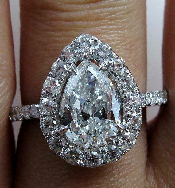 5ct Pear Cut VVS1/D Diamond Halo Vintage Engagement Ring 14K White Gold Finish