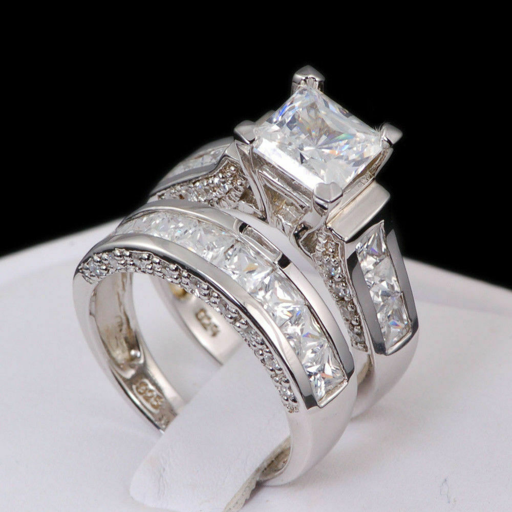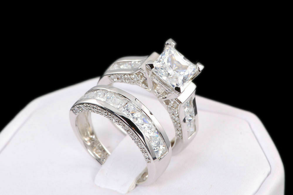 5Ct Princess Cut Diamond Bridal Set Solitaire Ring Band 14K White Gold Finish