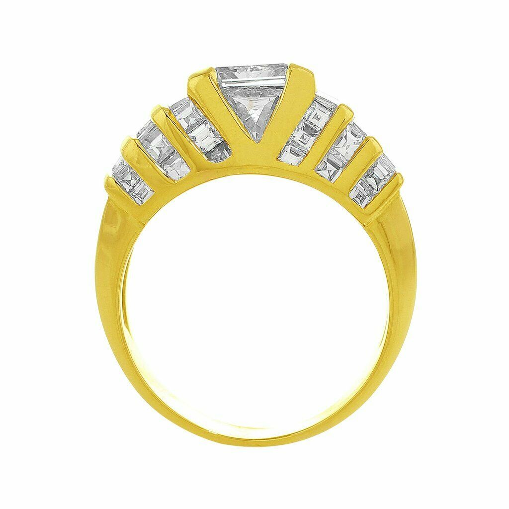 5Ct Princess Cut Diamond Cocktail Iced Engagement Ring 14K Yellow Gold Finish