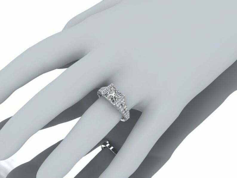 5ct Princess Cut Diamond Dual Row Accent Solitaire Vintage Bridal Set Ring 14k White Gold Finish