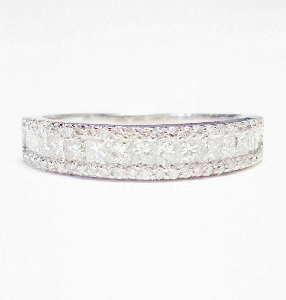 5Ct Princess Cut Diamond Half Eternity 3 Row Wedding Band 14K White Gold Finish