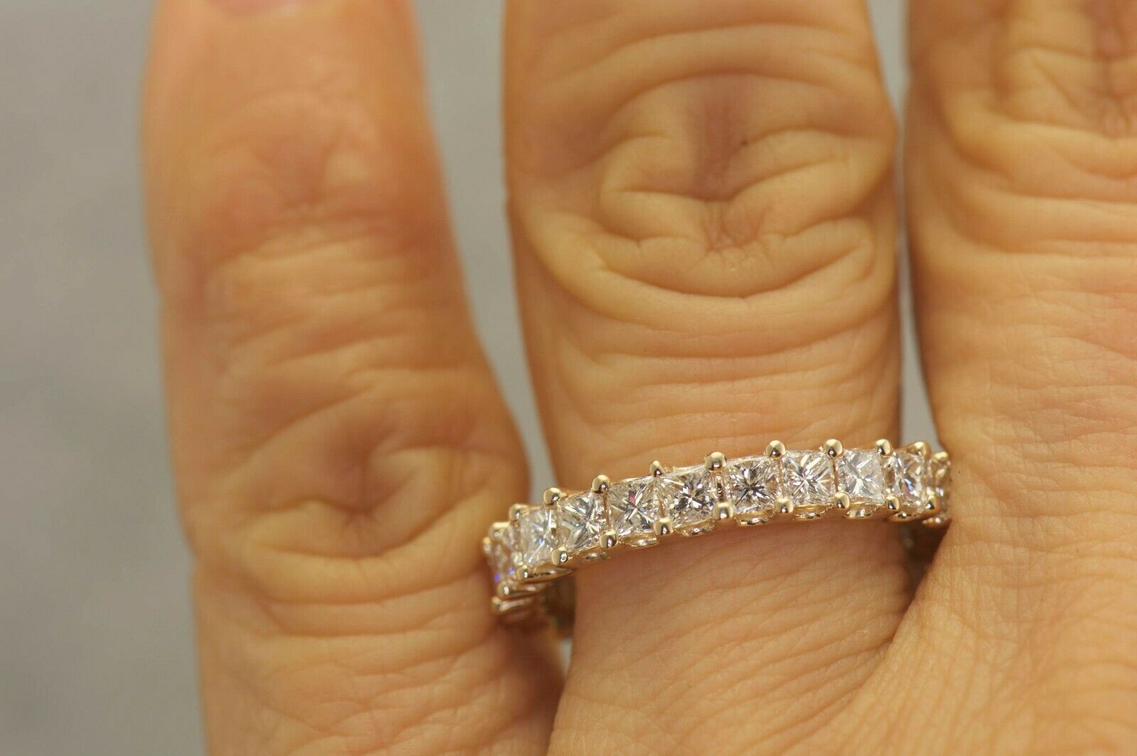 5Ct Princess Cut DVVS1 Diamond Full Eternity Wedding Band 14K Yellow Gold Finish