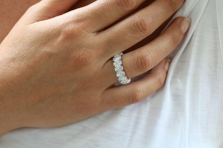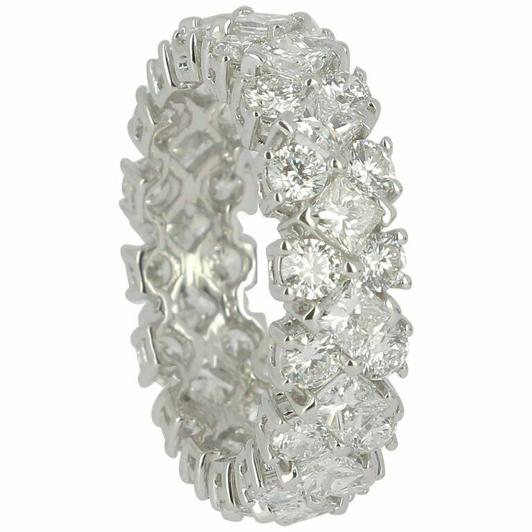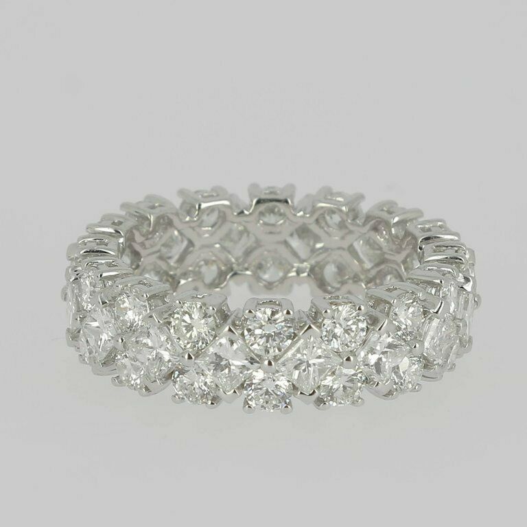 5ct Princess & Round Cut Diamond Wedding Ring Band Eternity 14k WhiteGold Finish