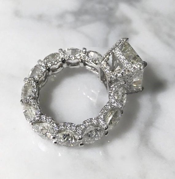 5ct Radiant Cut Diamond Gatsby Iced Queen Engagement Ring 14k White Gold Finish