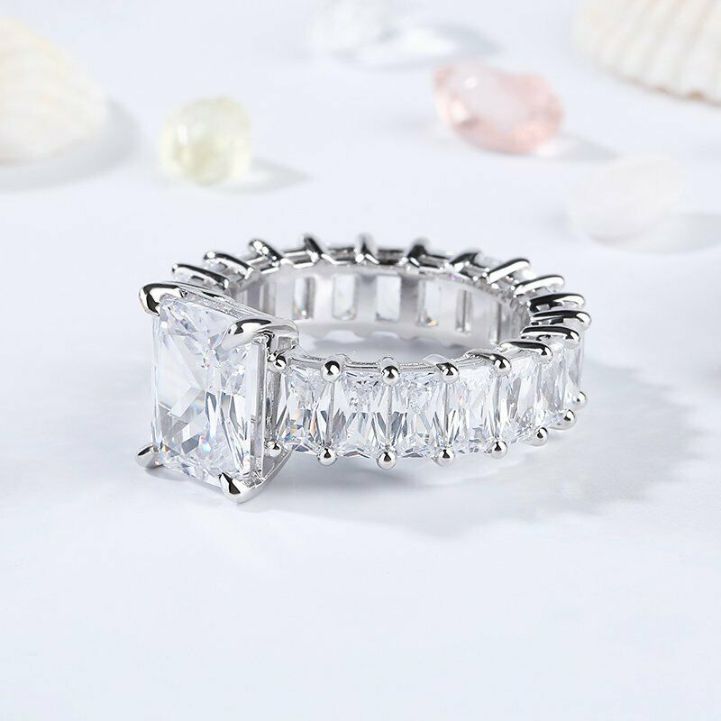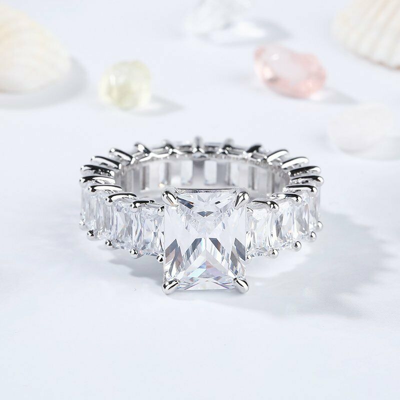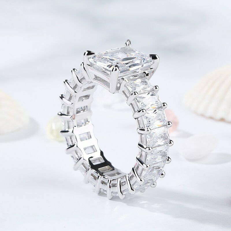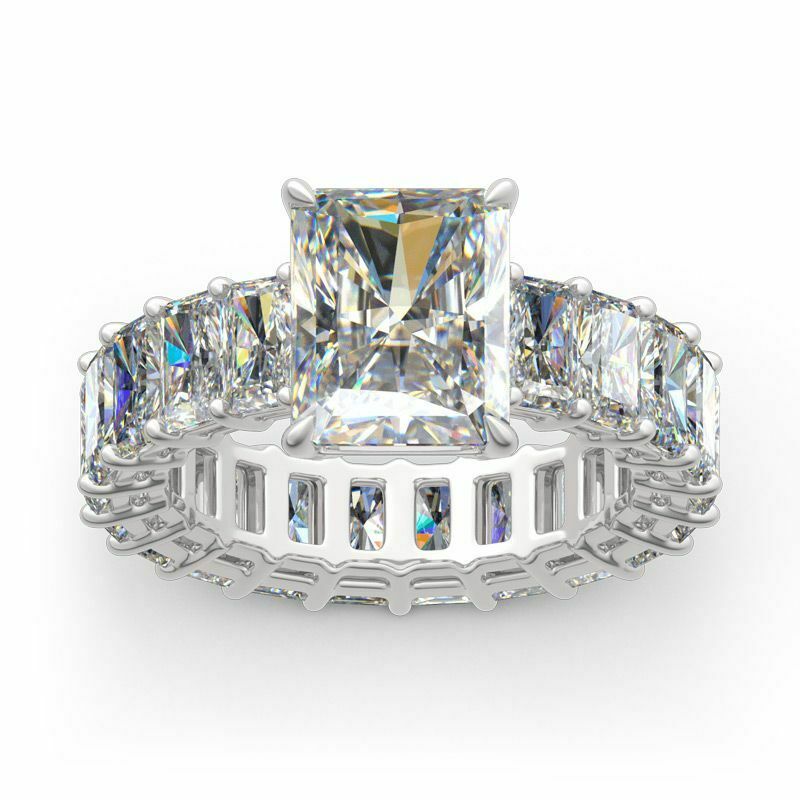5Ct Radiant Cut Diamond Solitaire Eternity Engagement Ring 18K White Gold Finish